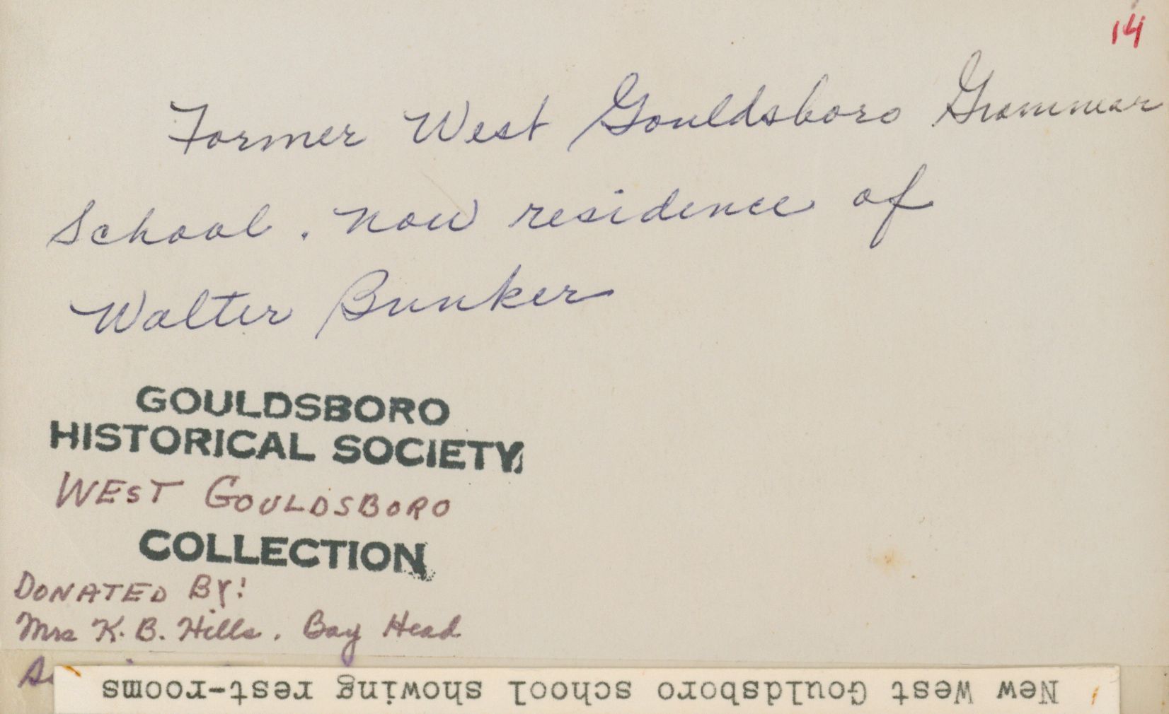 Former West Gouldsboro Grammar School. Later home of Walter Bunker.Photograph Details