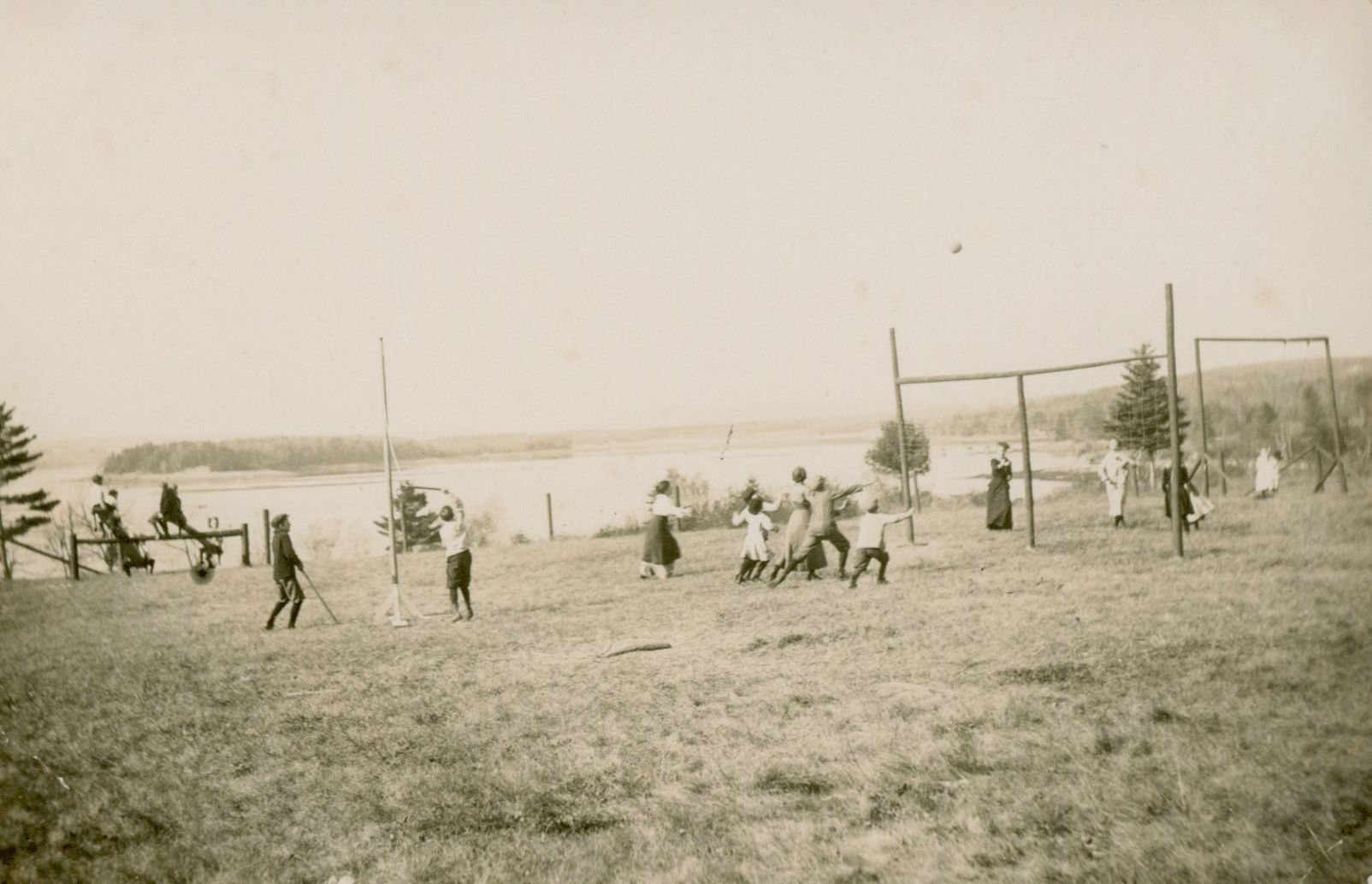 Children playing behind the West Gouldsboro Village School.