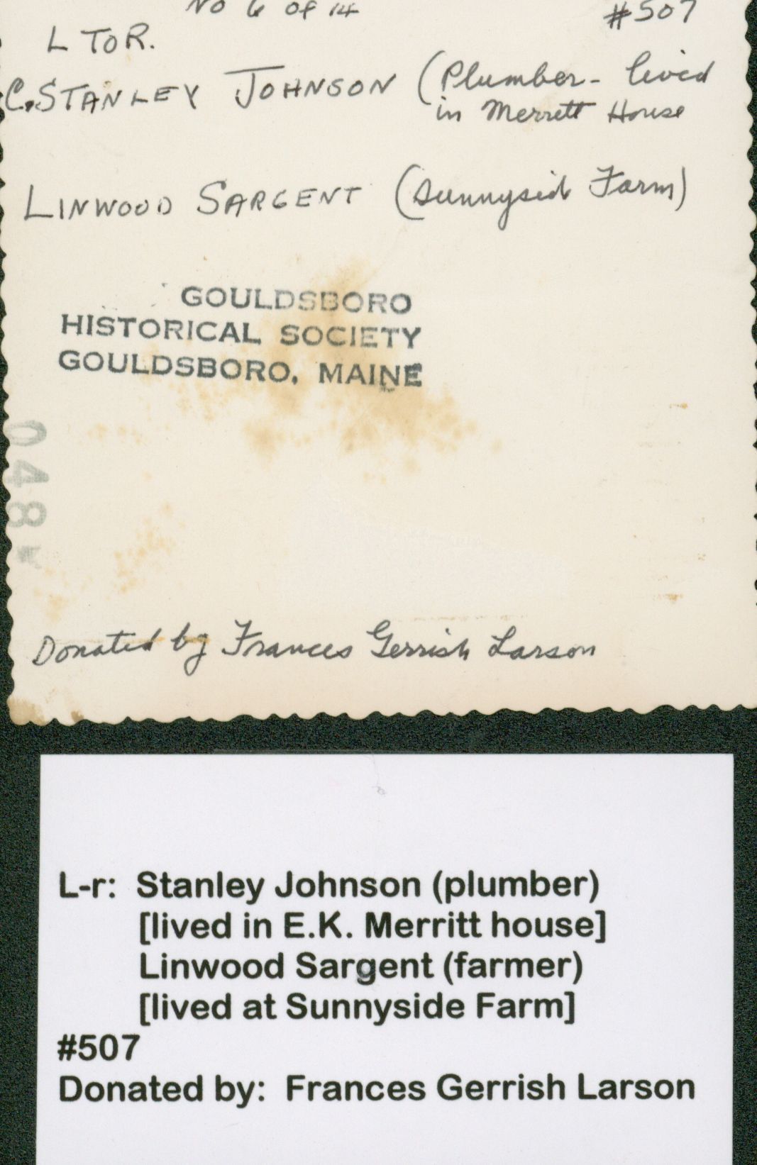 C. Stanley Johnson (a plumber that lived in the Merritt House) and Linwood Sargent (lived at Sunnyside Farm).Photograph Details