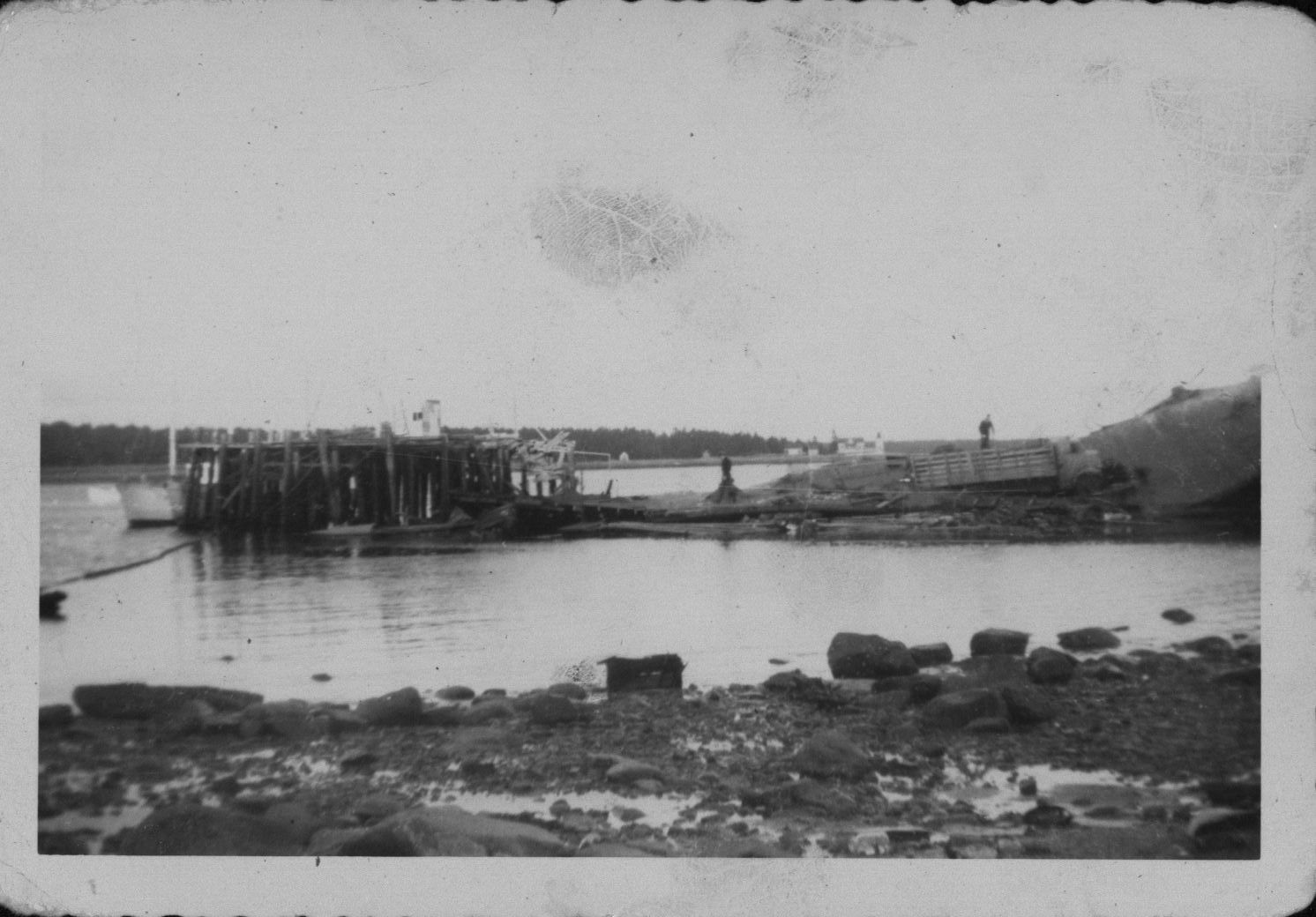 Stinson Factory and Wharf after a hurricane as pictured from the shore.Photograph Details