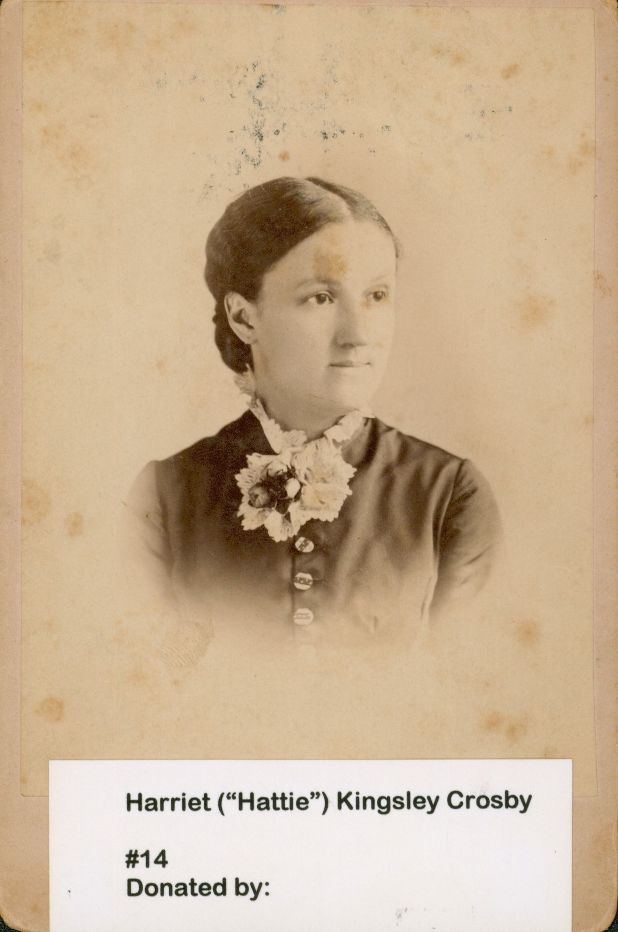 Harriett Kingsley Crosby portrait. AKA Hattie Crosby. Daughter of John Kingsley and Mary Black Shaw. Wife of Arthur Welton Crosby.Photograph Details