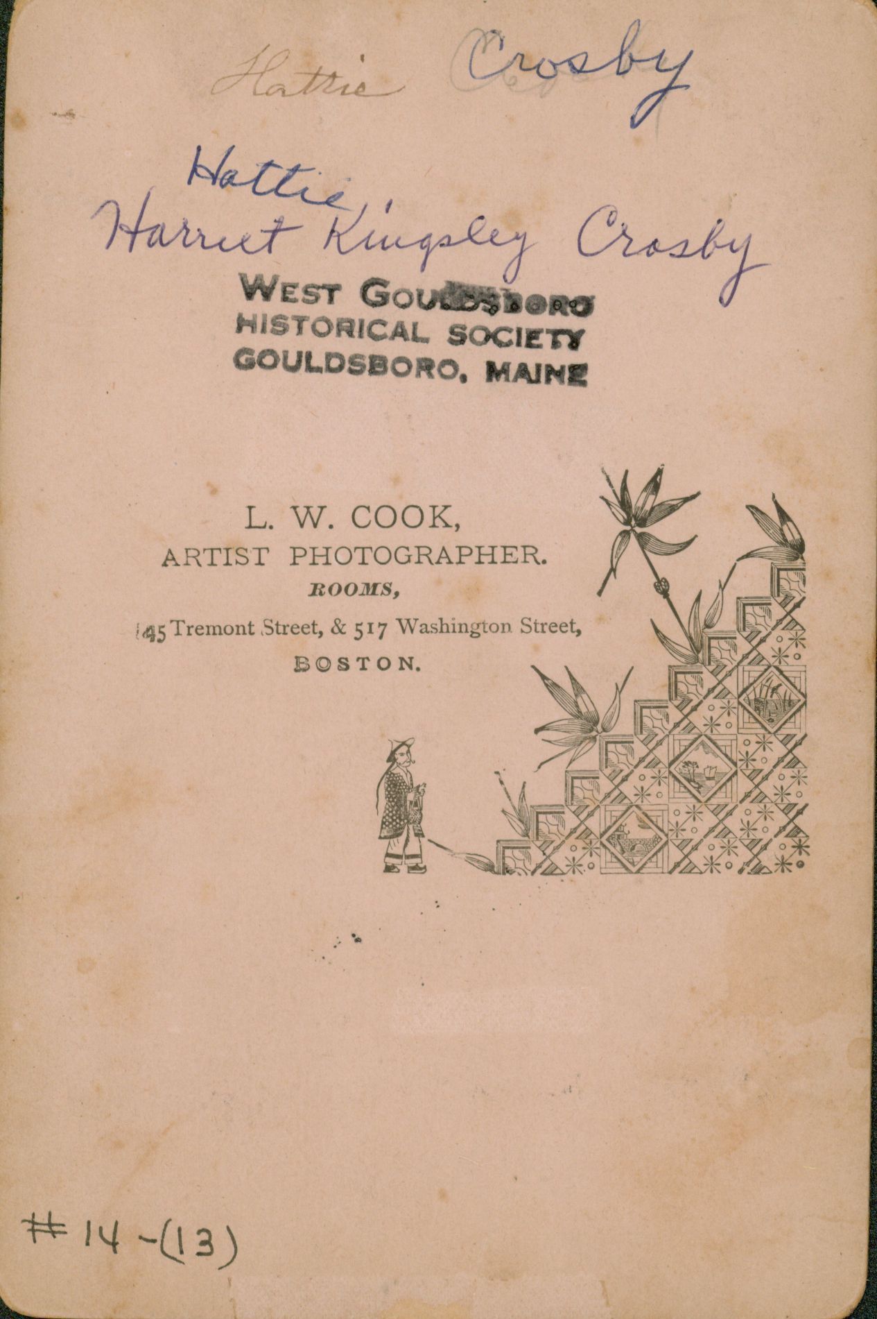 Harriett Kingsley Crosby portrait.Entry/Object ID