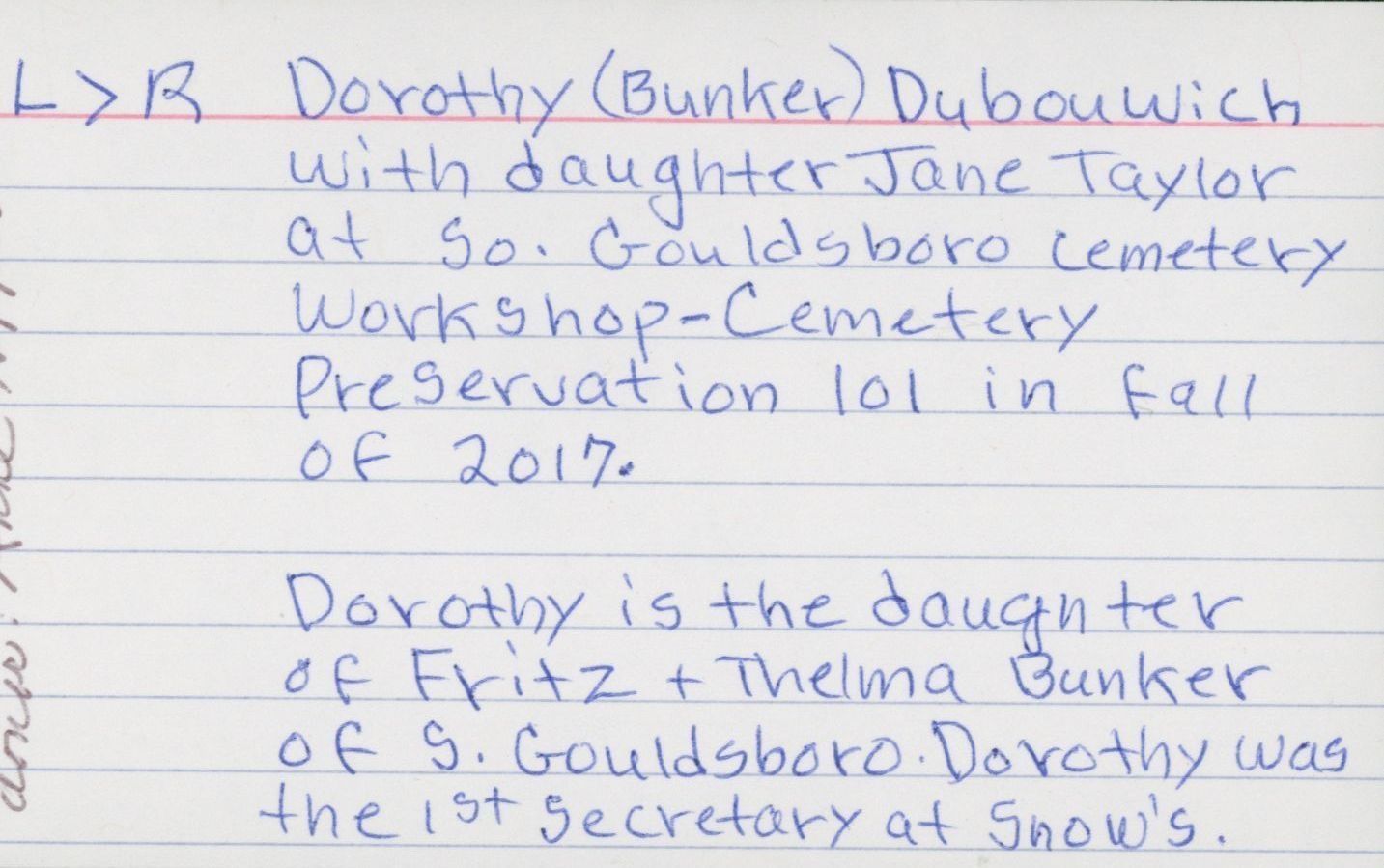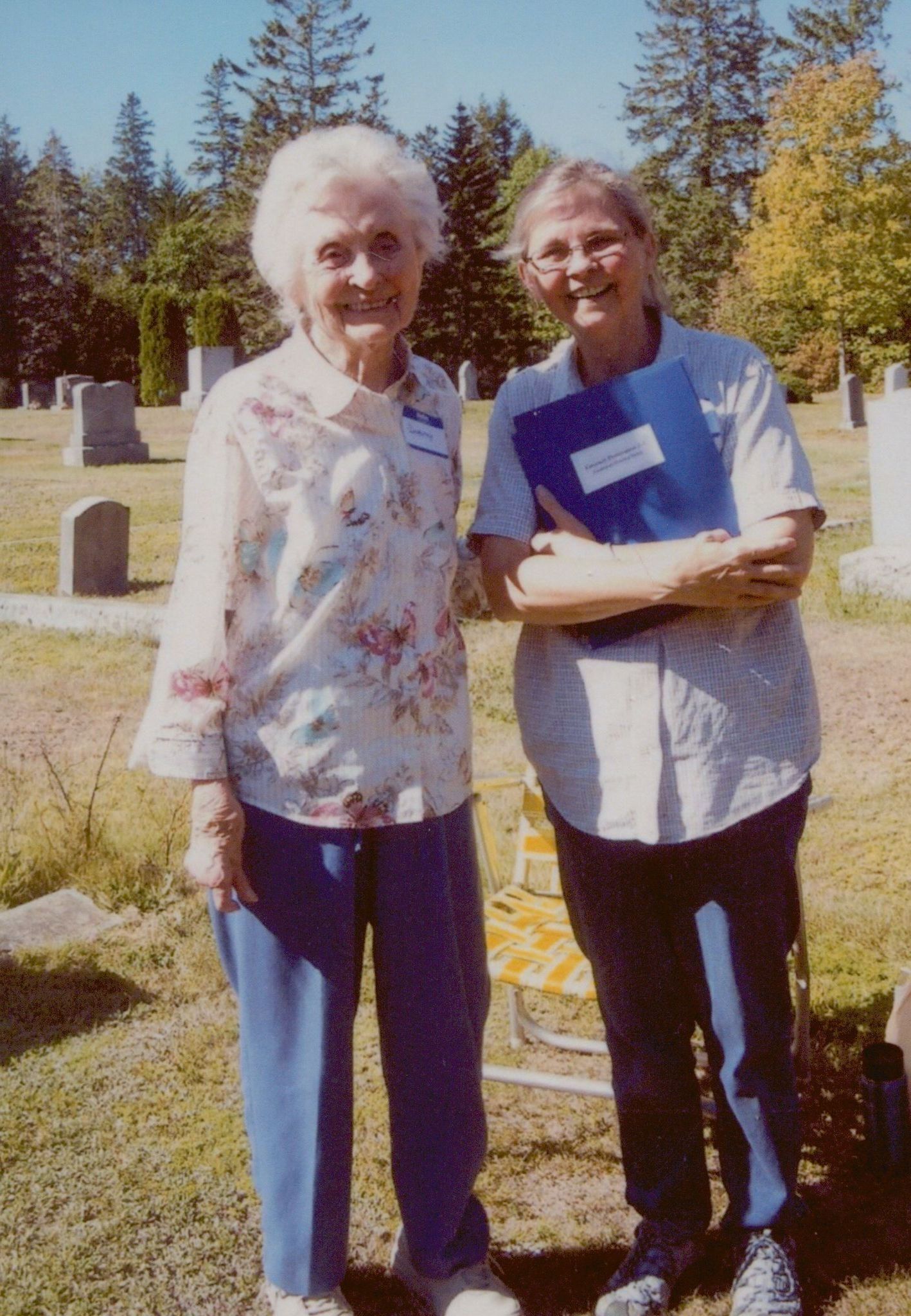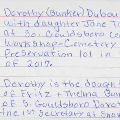 Dorothy Bunker Dubowick and Jane Dubowick Taylor. Participants in the Cemetery Preservation Workshop at Hillside Cemetery in South Gouldsboro in 2017.Photograph Details