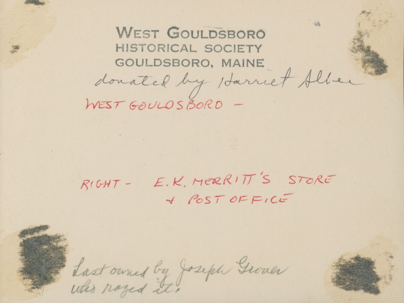 E. K. Merritt's store and Post Office. Last owned by Joseph Grover who razed the building.Photograph Details