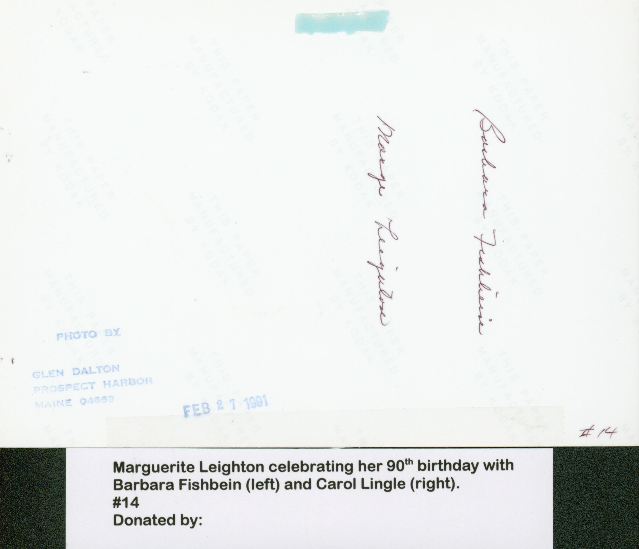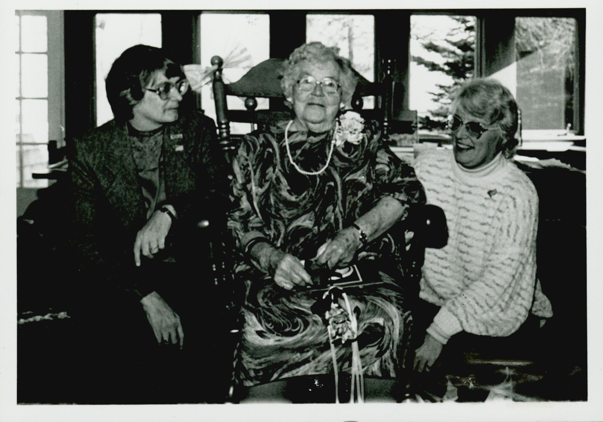 Marguerite Leighton on her 90th birthday. Pictured with Barbara Fishbein and Carol Lingle.Photograph Details