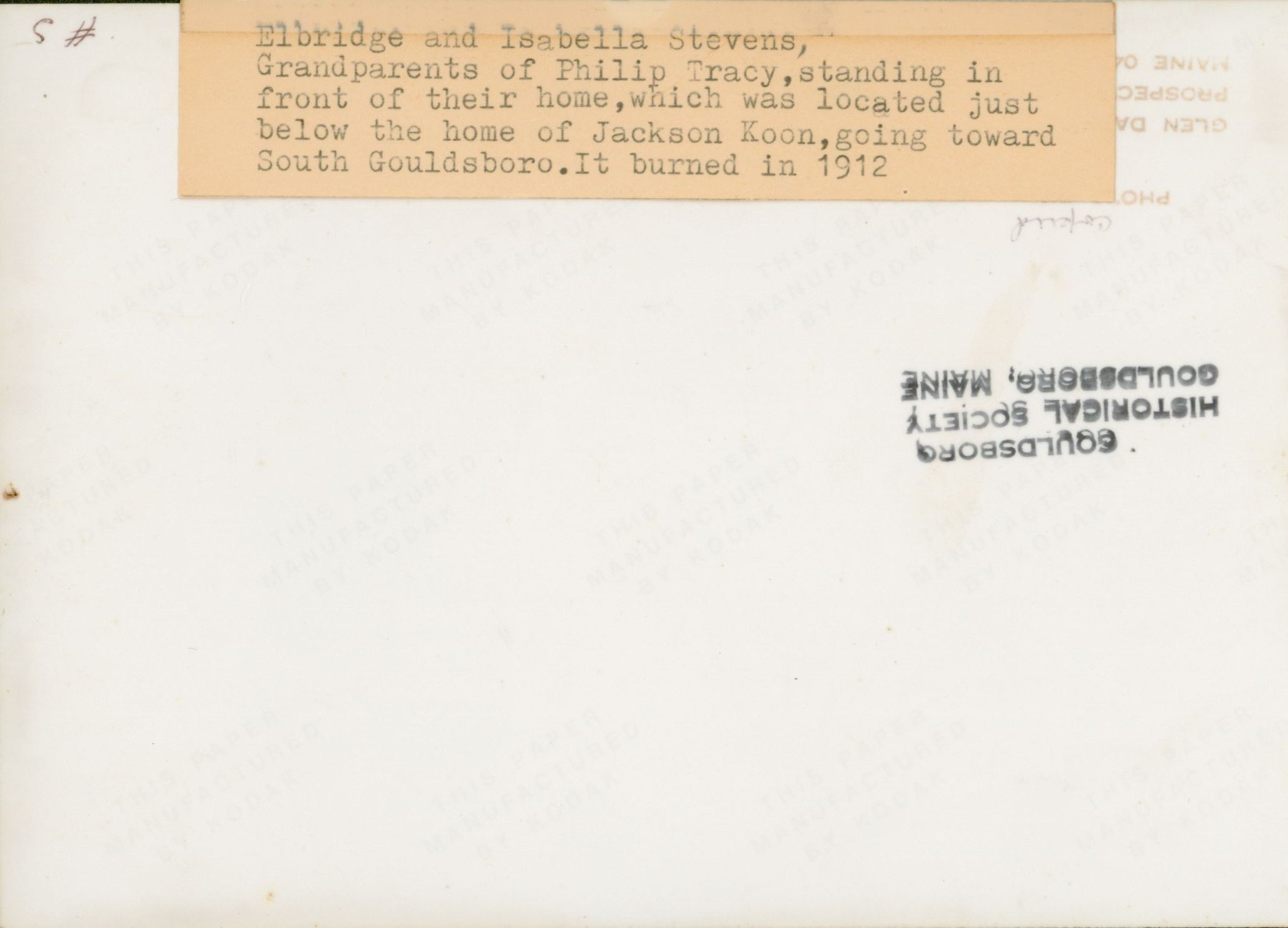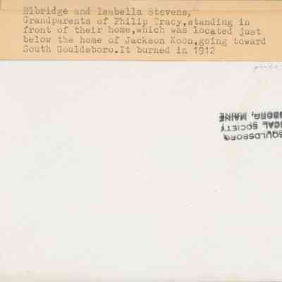 Elbridge and Isabelle Stevens home in West Gouldsboro, ME. Located just below the home of Jackson Koon, on the way to South Gouldsboro. It burned in 1912.Photograph Details