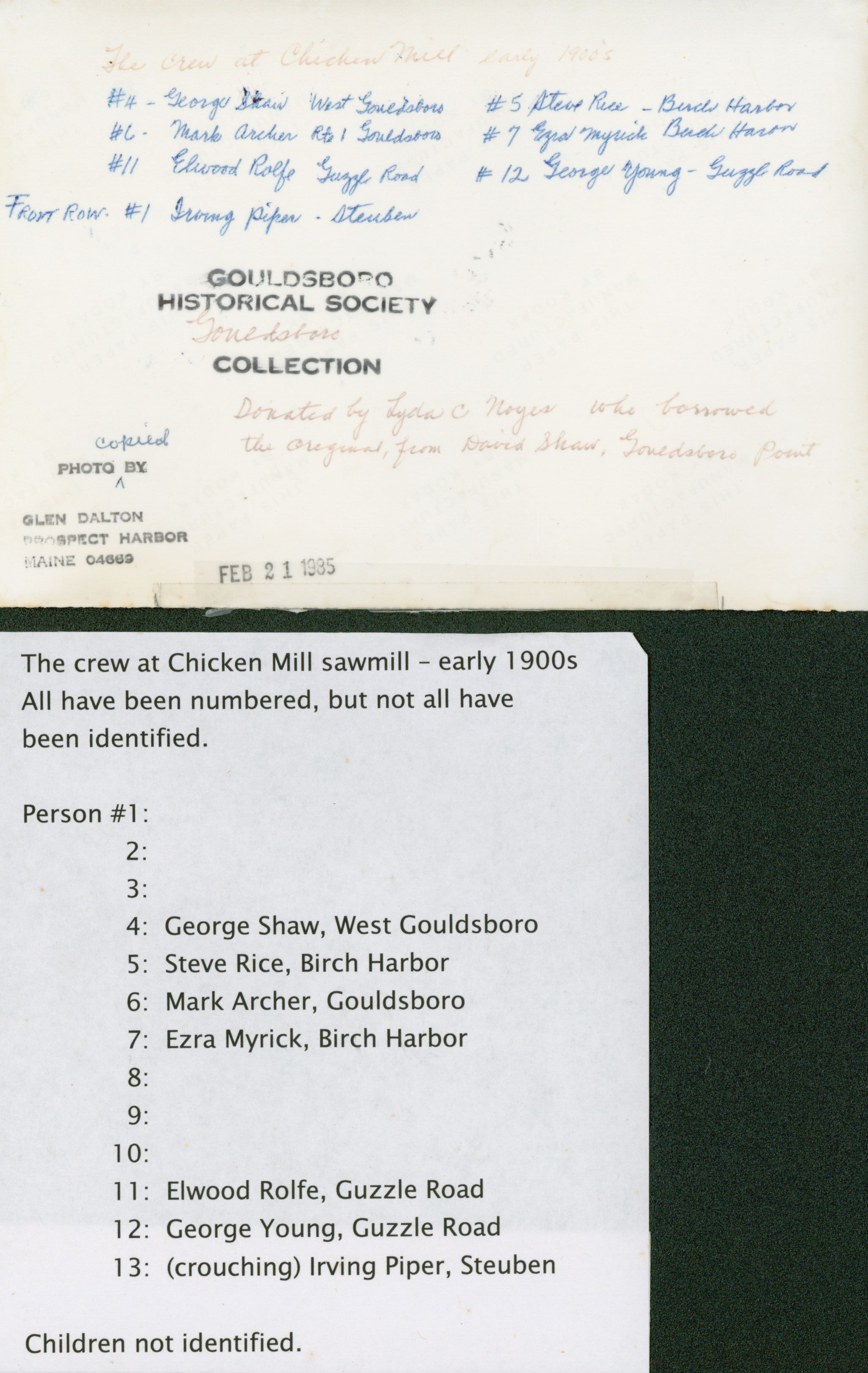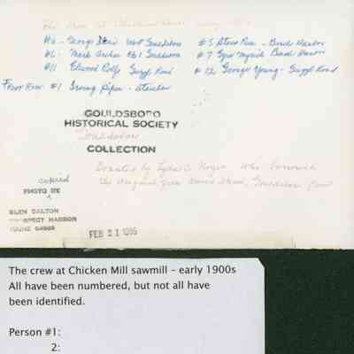 Employees at Chicken Mill. Some are identified on the back.Photograph Details