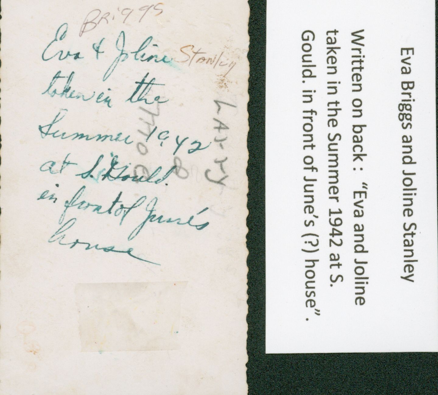 Eva Briggs and Jolene Stanley. Circa 1942.Photograph Details