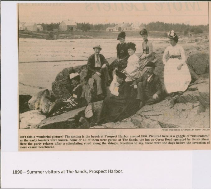 A clipping containing a photograph of Rusticators on the Rocks near The Sands circa 1890. Likely published in the Ellsworth American.Publication Details