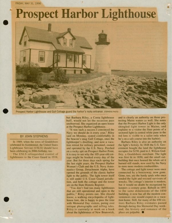 Article in the Ellsworth American regarding Prospect Harbor LighthousePublication Details