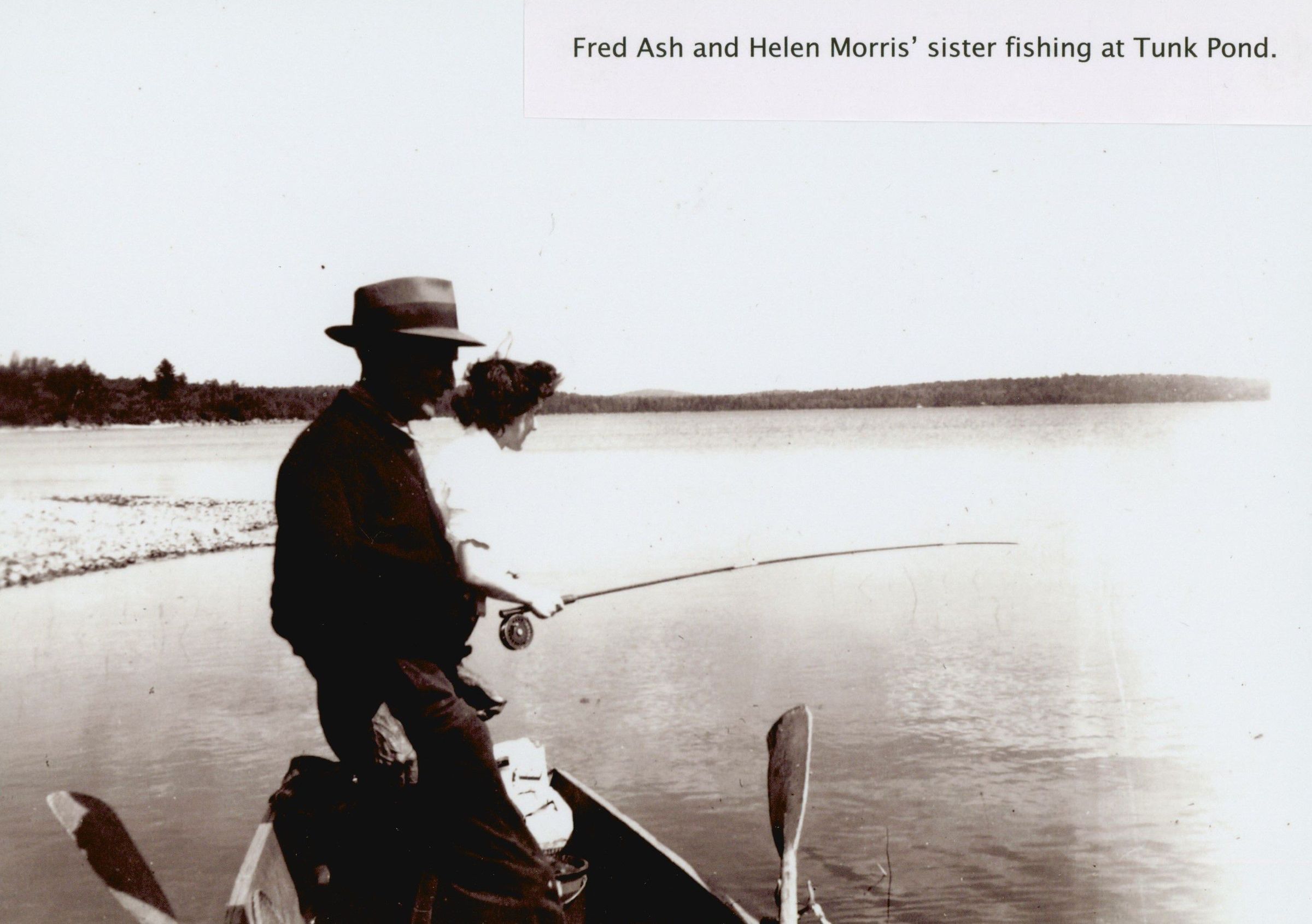 Fred Ash and Helen Morris's sister fishing at Tunk Pond.Photograph Details