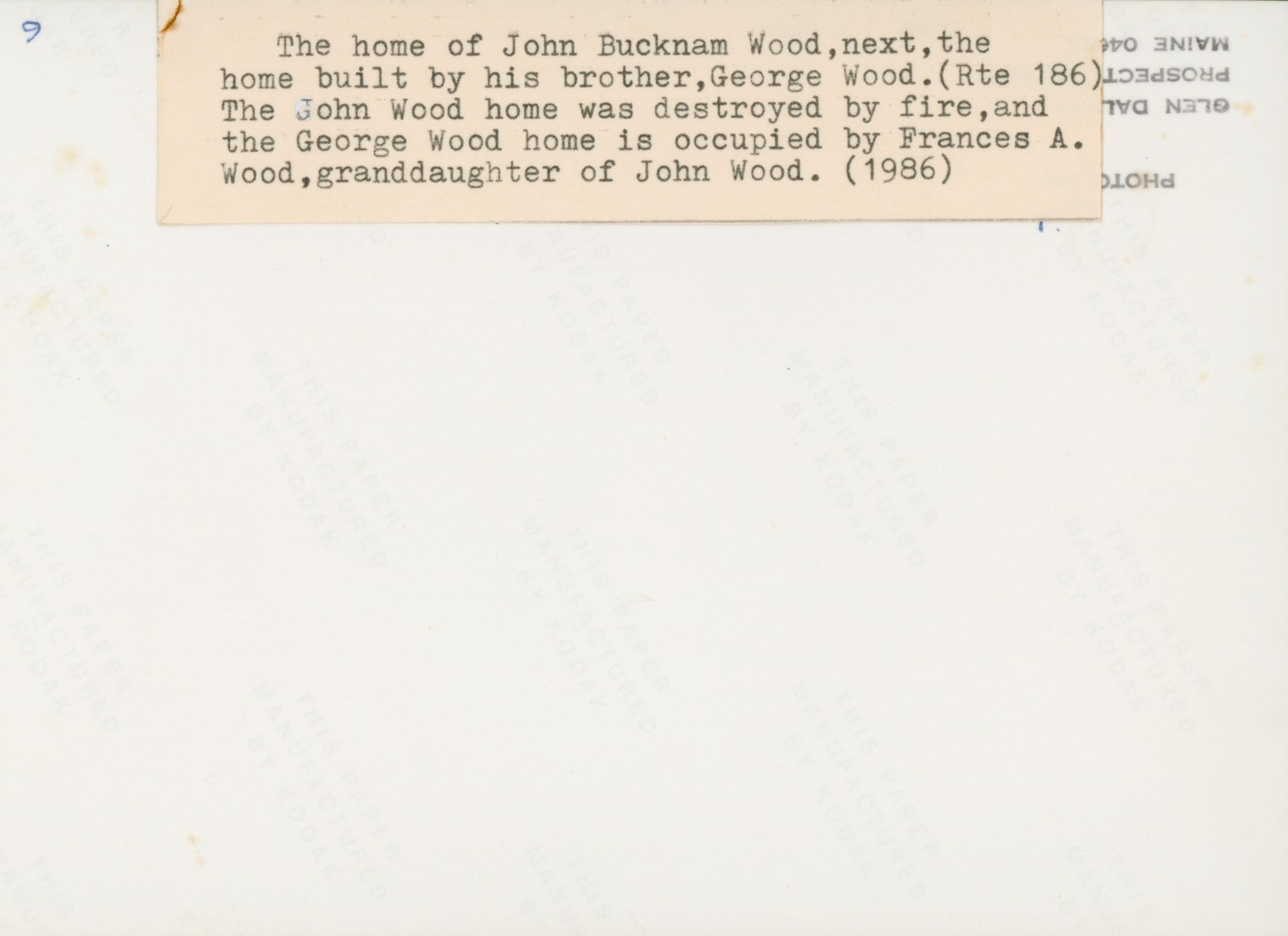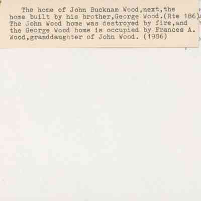 The John Buckman Wood house and the George W. Wood house in distance. The John Wood house was later destroyed by fire.Photograph Details