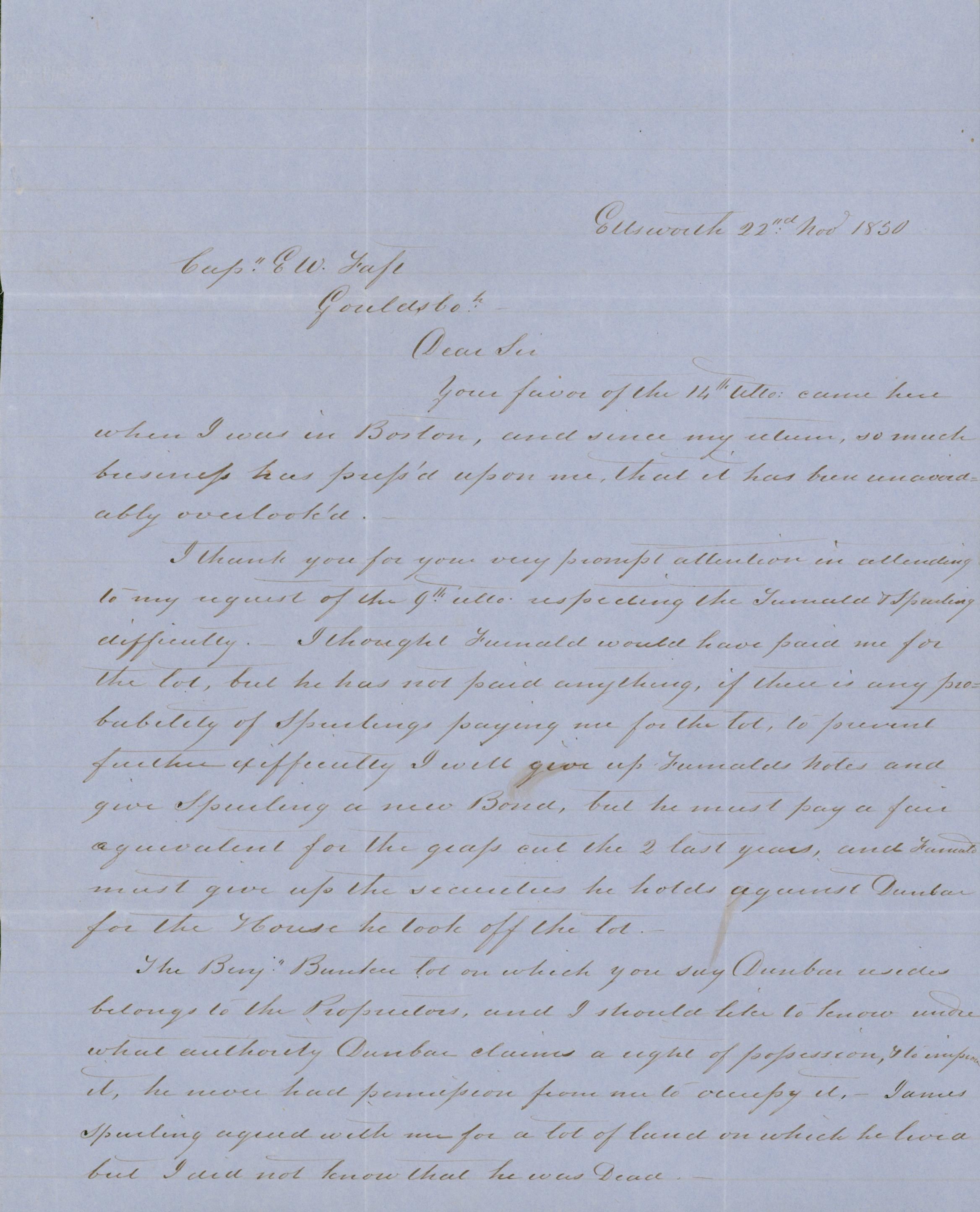 Letter to Ephraim Wales Taft from John BlackEntry/Object ID
