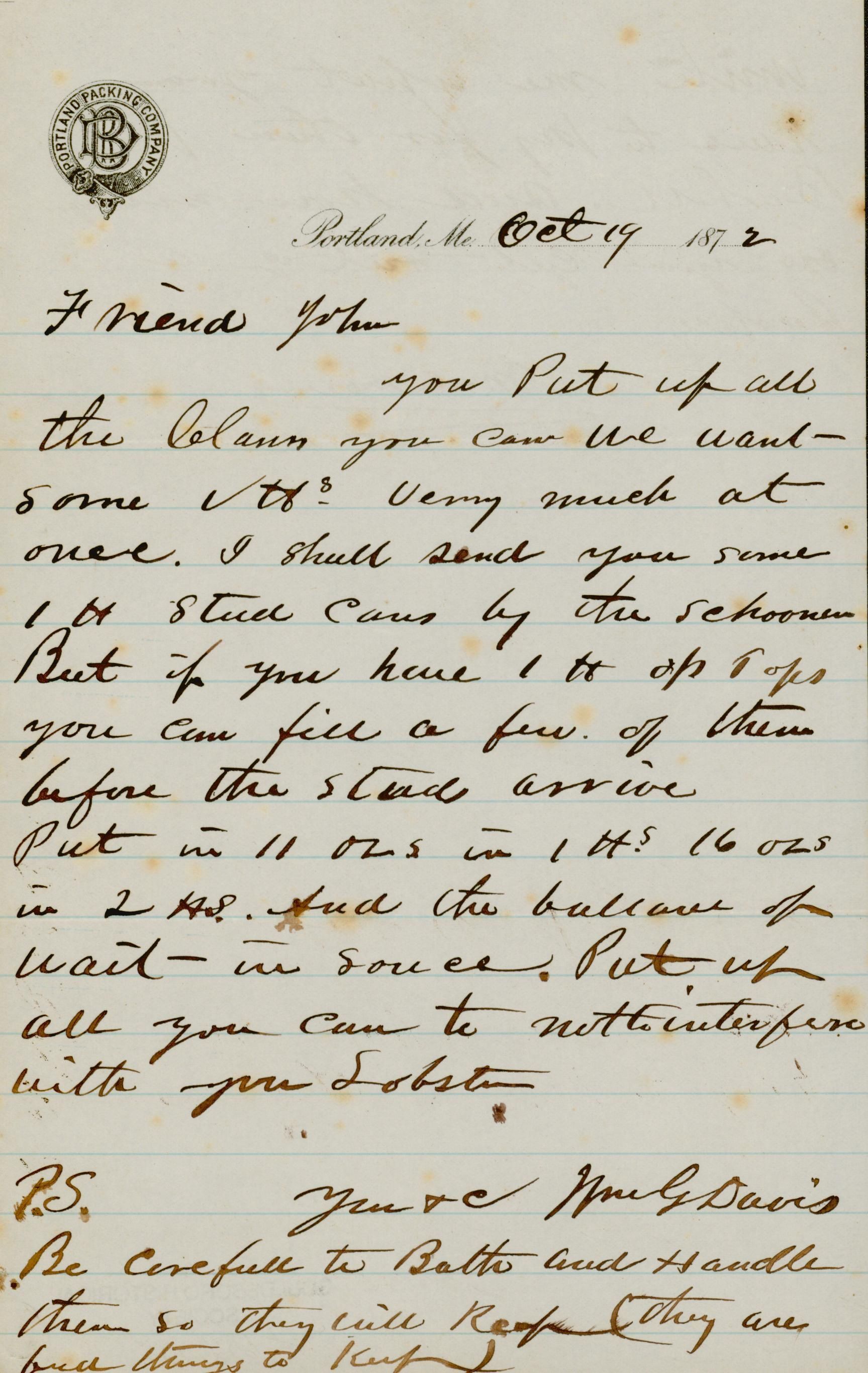 Letters to John Williams at the Stave Island Lobster Factory ( Oct 1872 - 1874)Entry/Object ID