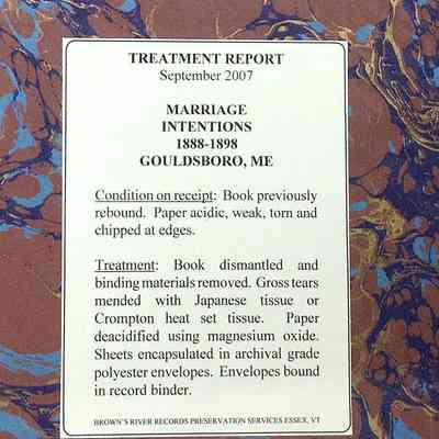 Original conserved in September, 2007 by Gouldsboro Town Manager. See Treatment Report Image on the inside cover of the book.Update Date