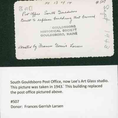 New South Gouldsboro Post Office. This building replaced the previous post office that burned on December 29, 1930. Circa 1943.Photograph Details