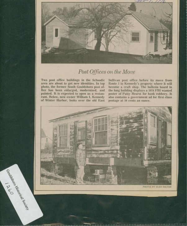Remodeling of the South Gouldsboro Post Office and relocation of the Sullivan Post Office. Circa 1976.Publication Details