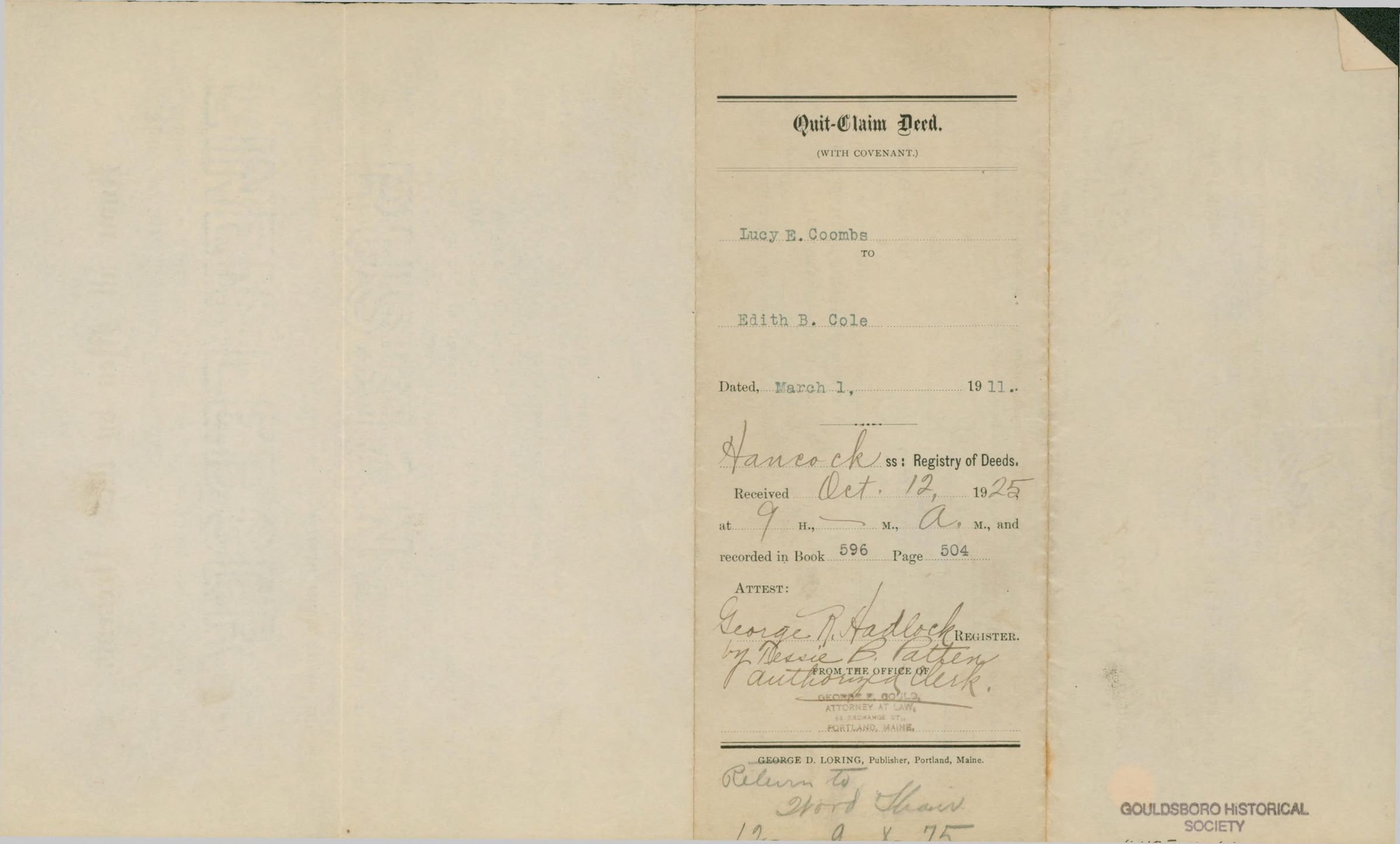 Quit-Claim Deed. Lucy E. Coombs to Edith B. Cole.Archive Details