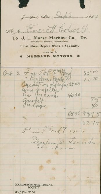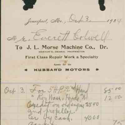 Receipt for Everett Colwell from J. L. Morse Machine Company.Archive Items Details