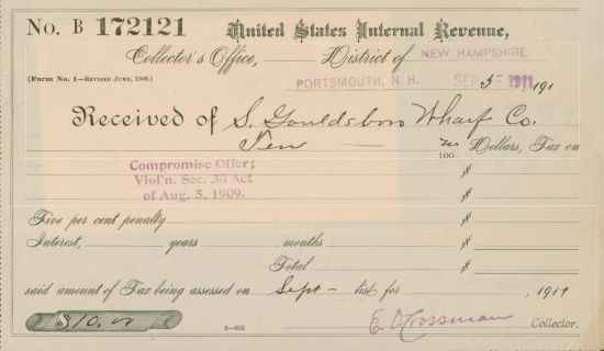 Receipt from the South Gouldsboro Wharf Co. to the Internal Revenue Service.Archive Details