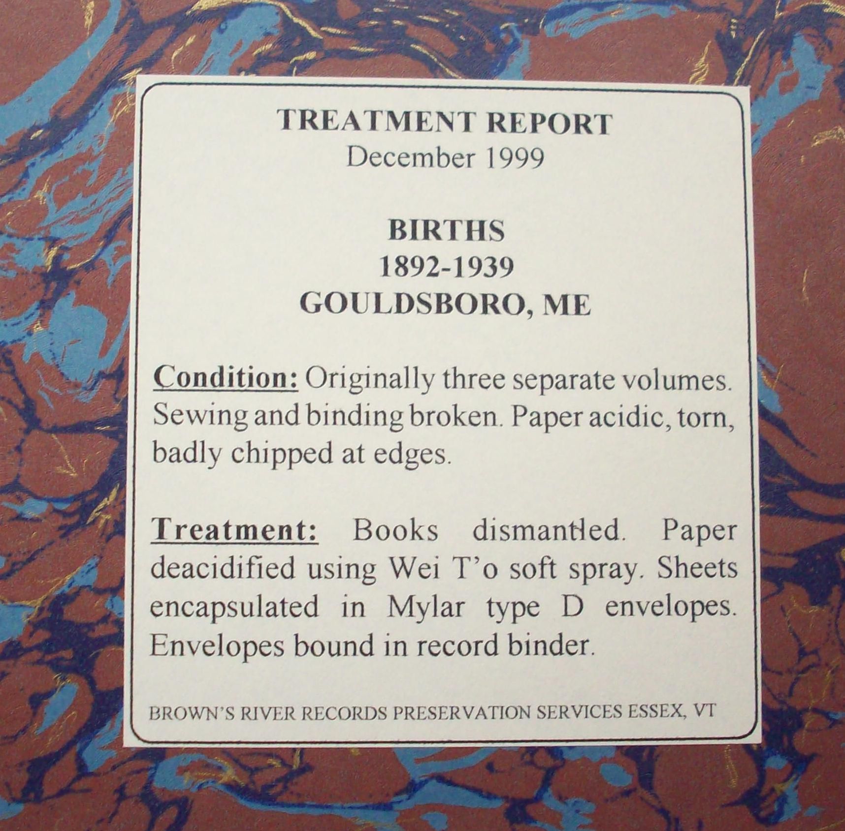 Original conserved in 12/1999 by Gouldsboro Town Manager. See Treatment Report Image on the inside cover of the book.Update Date