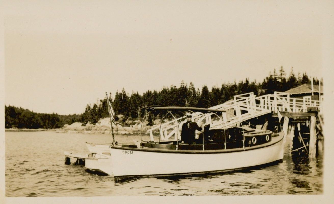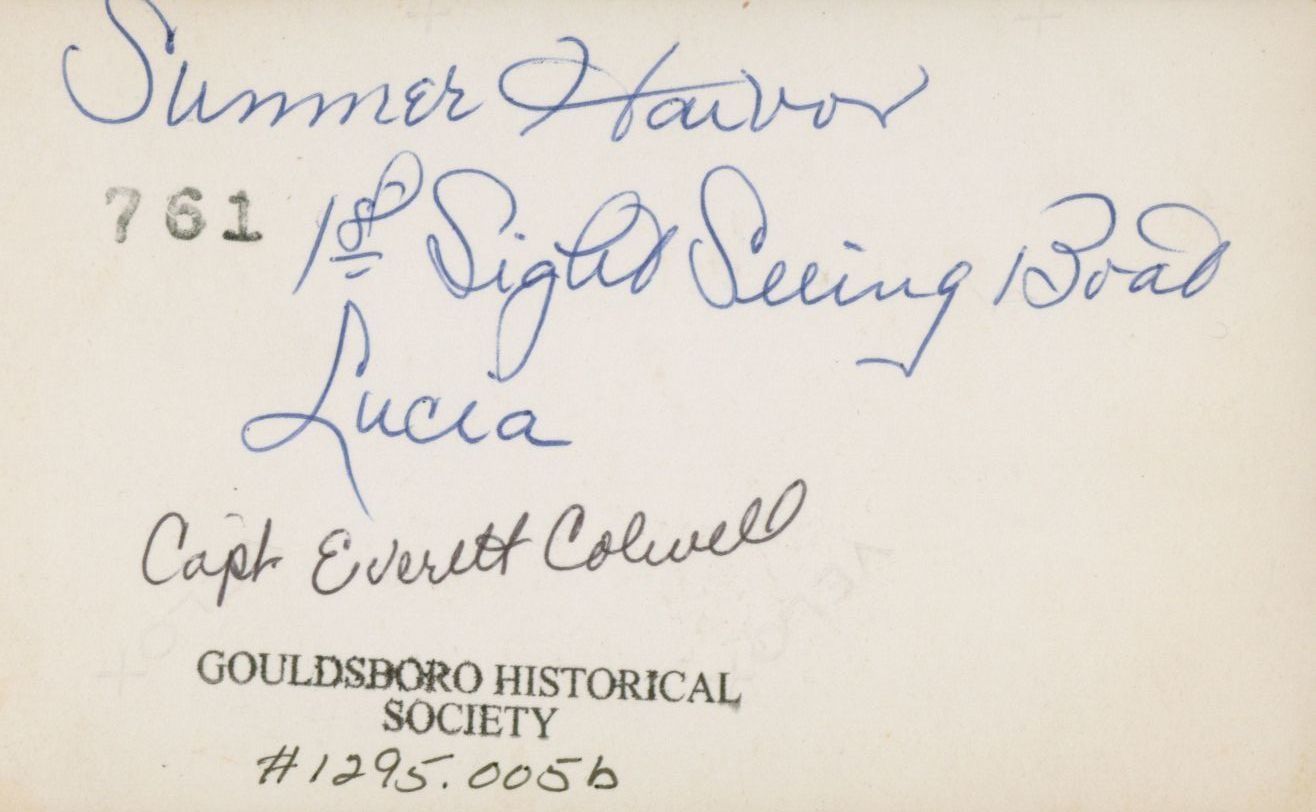Sightseeing Boat, named Lucia, in Summer Harbor operated by Captain Everett Colwell.Photograph Details