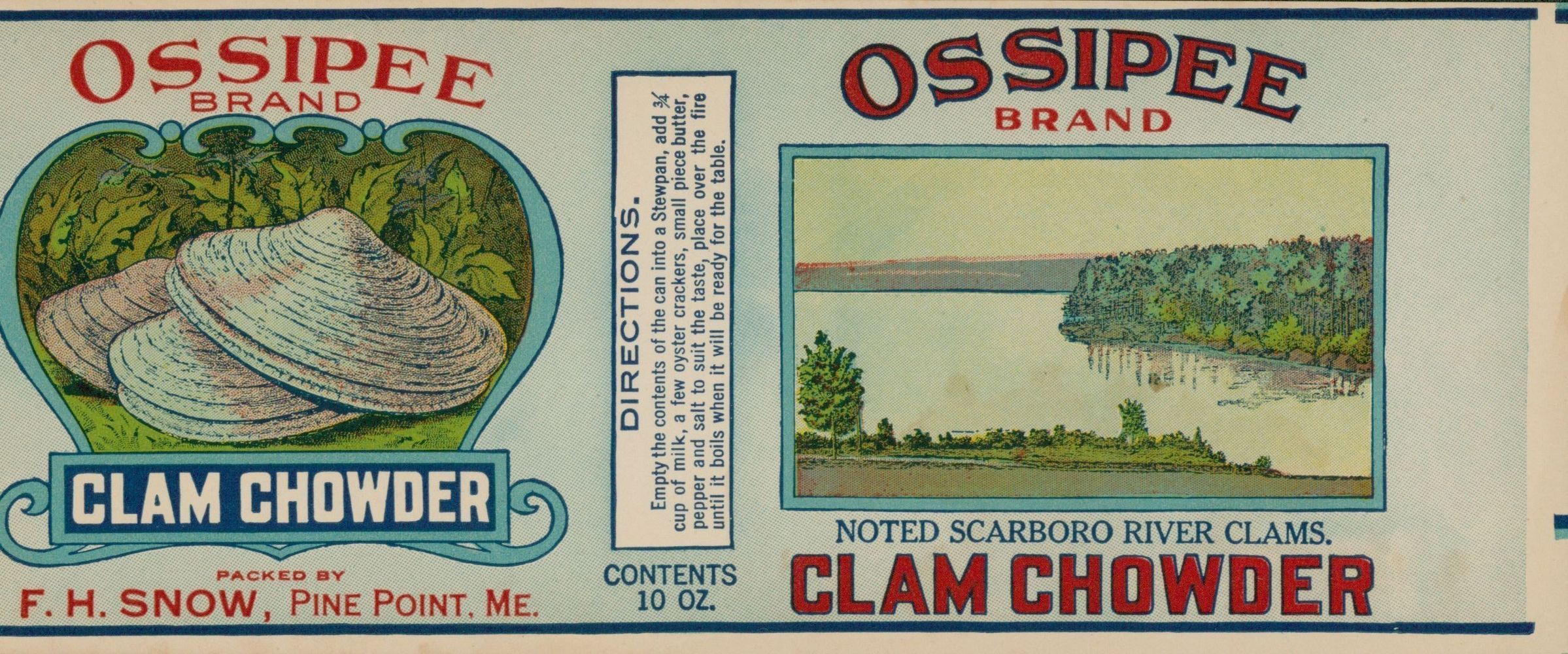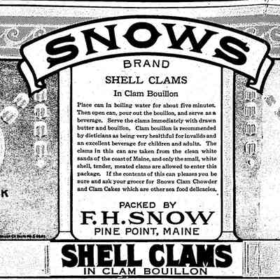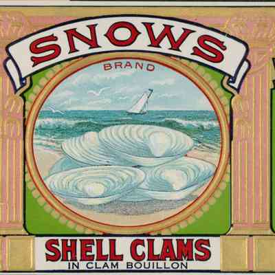 Snow's Can Labels for Clam Chowder and Shell Clams. Snow's Canning Factory in South Gouldsboro.