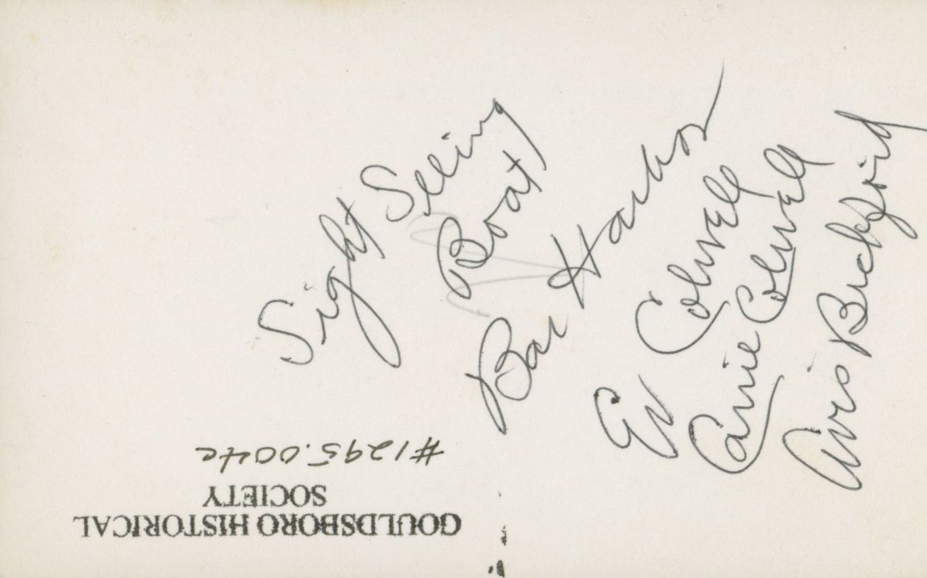 Three Women on the dock in Summer Harbor next to the Lucia. Names on the back of the photo are incorrect.Photograph Details