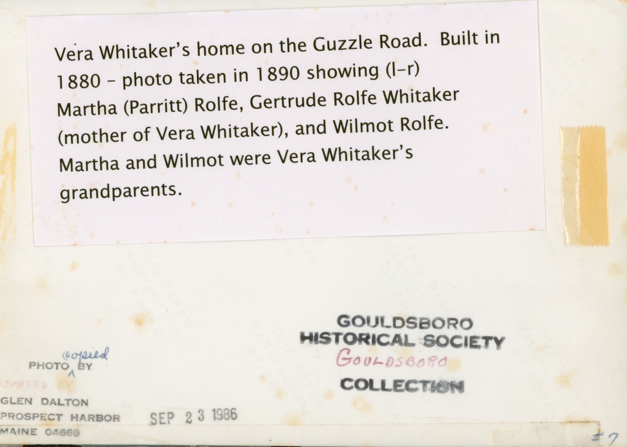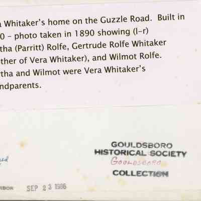 Vera Whitaker's Residence on the Guzzle Road. House built circa 1880. Photo taken in 1890.Photograph Details