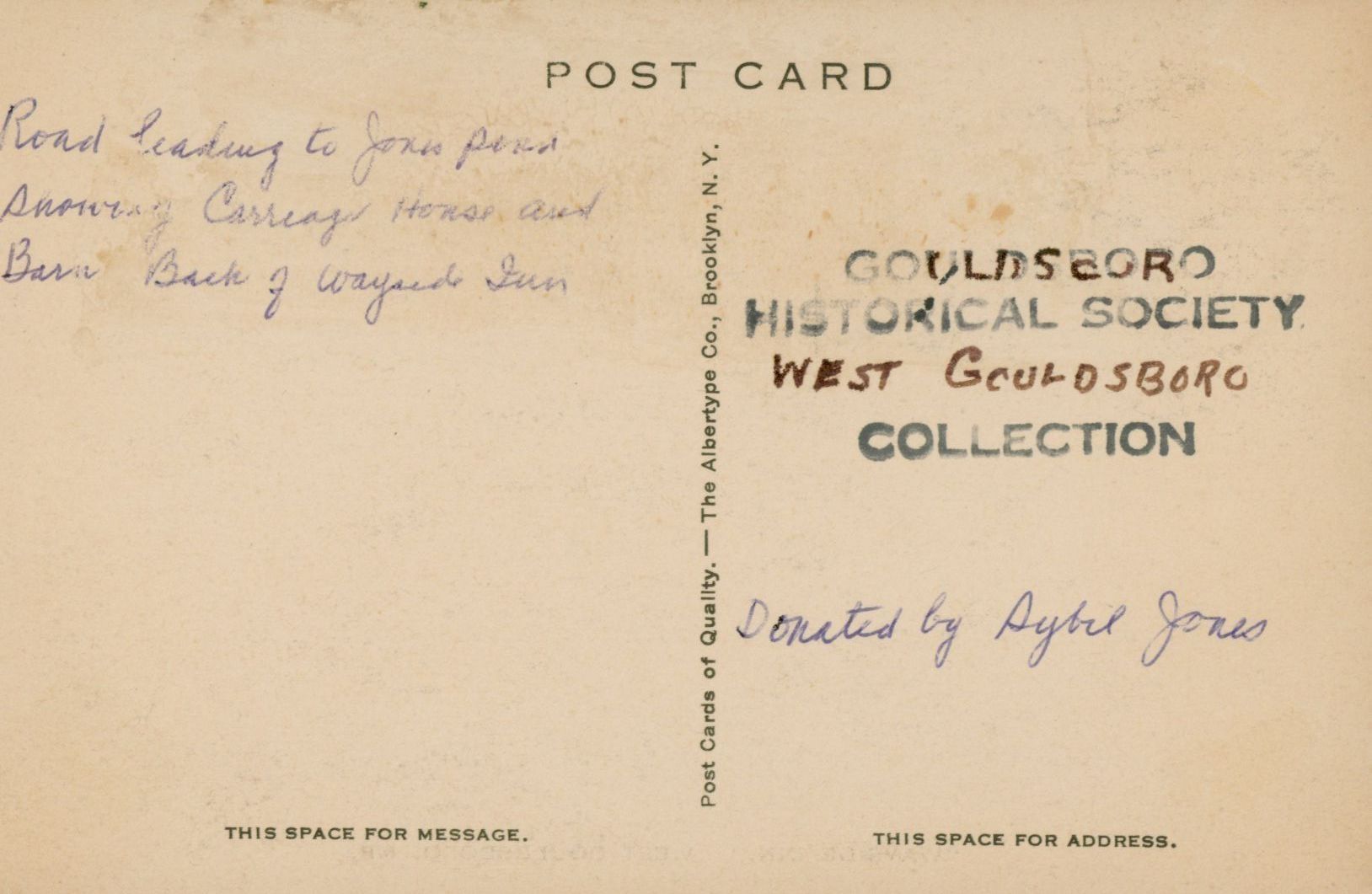 Original structure was built in the early 1800s by Abijah Jones. Ebenezer Wood bought it in 1828, then deeded to his son, Samuel G. Wood in 1861. Samuel added a third floor and operated the "Wayside Inn" until he sold it in 1915 to Frank Crowhurst. Frank operated the Inn until it was consumed by fire in 1936. Frank P. Noyes purchased the property after the fire. Chandler Noyes, son of Frank, built a house on the property in 1956.Postcard Details