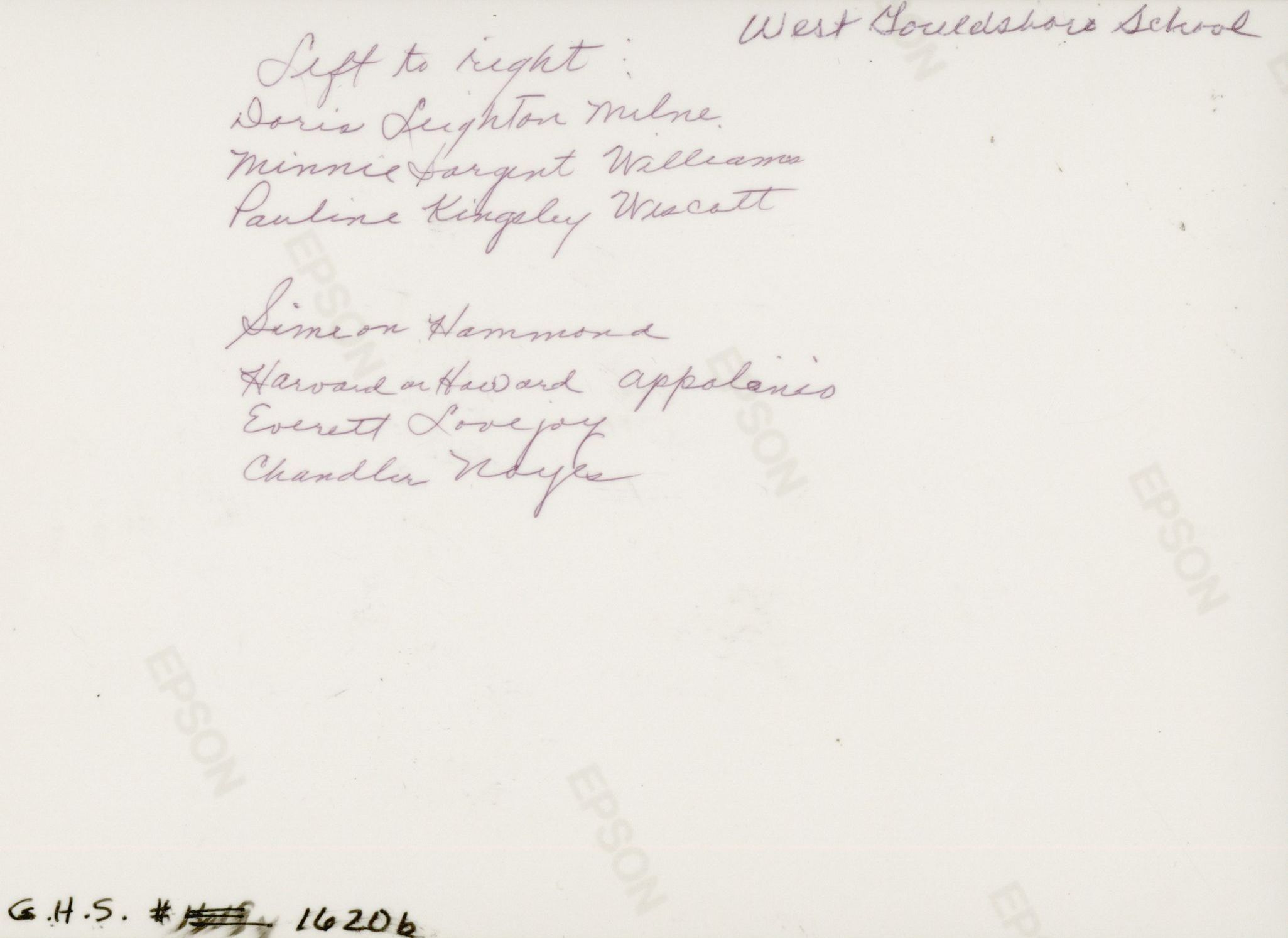 West Gouldsboro Village School Students.Entry/Object ID