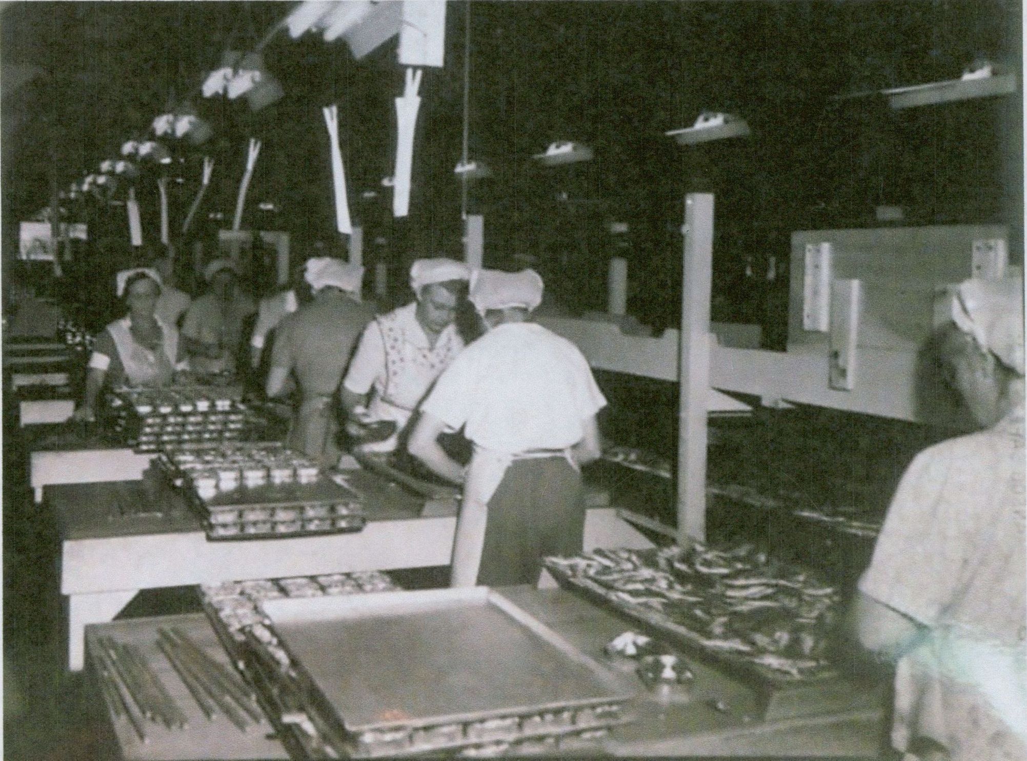 Women packing sardines in Snow's Canning Factory.