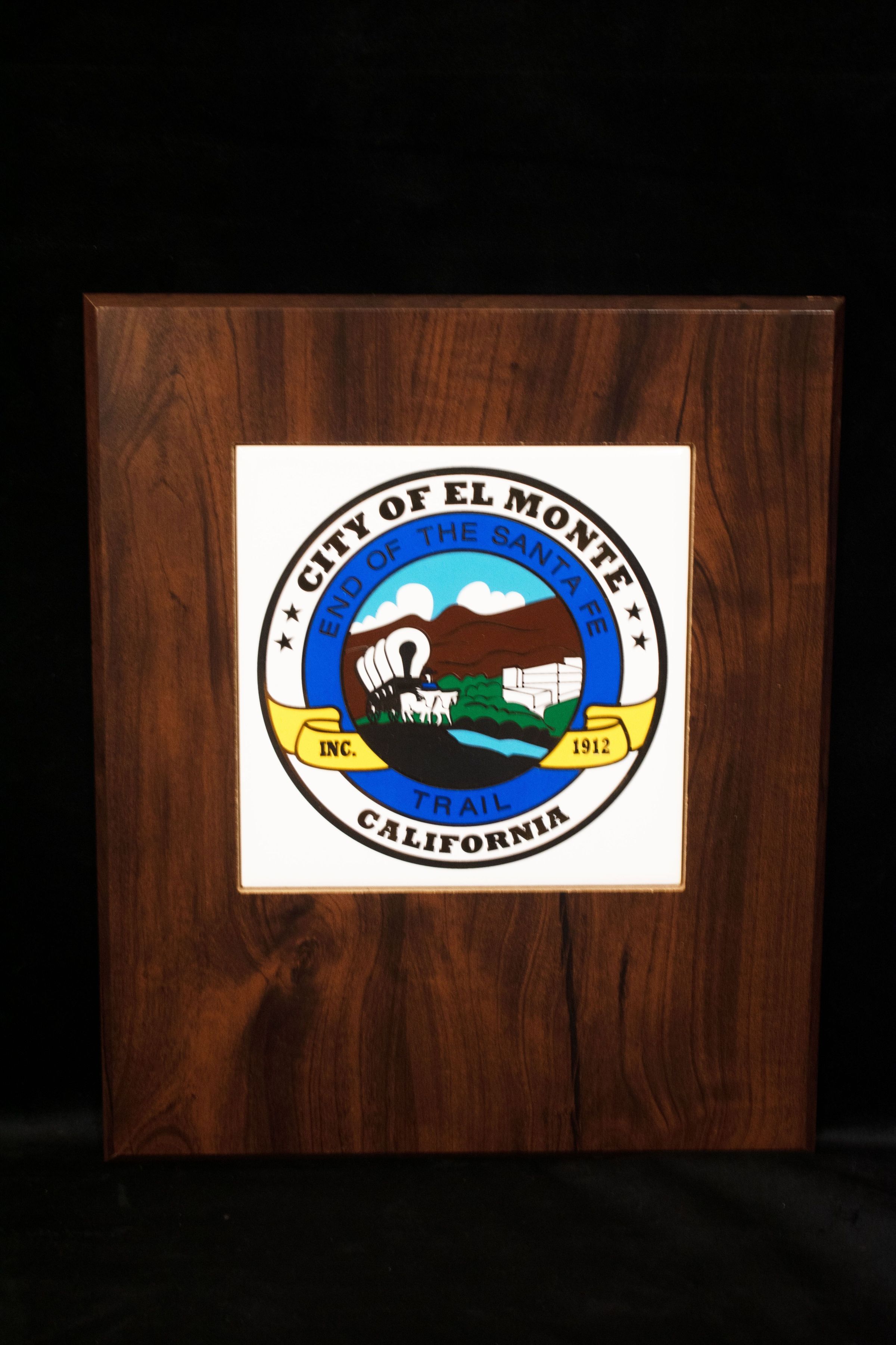 Tile mounted inside a wooden plaque from the City of El Monte.Collection