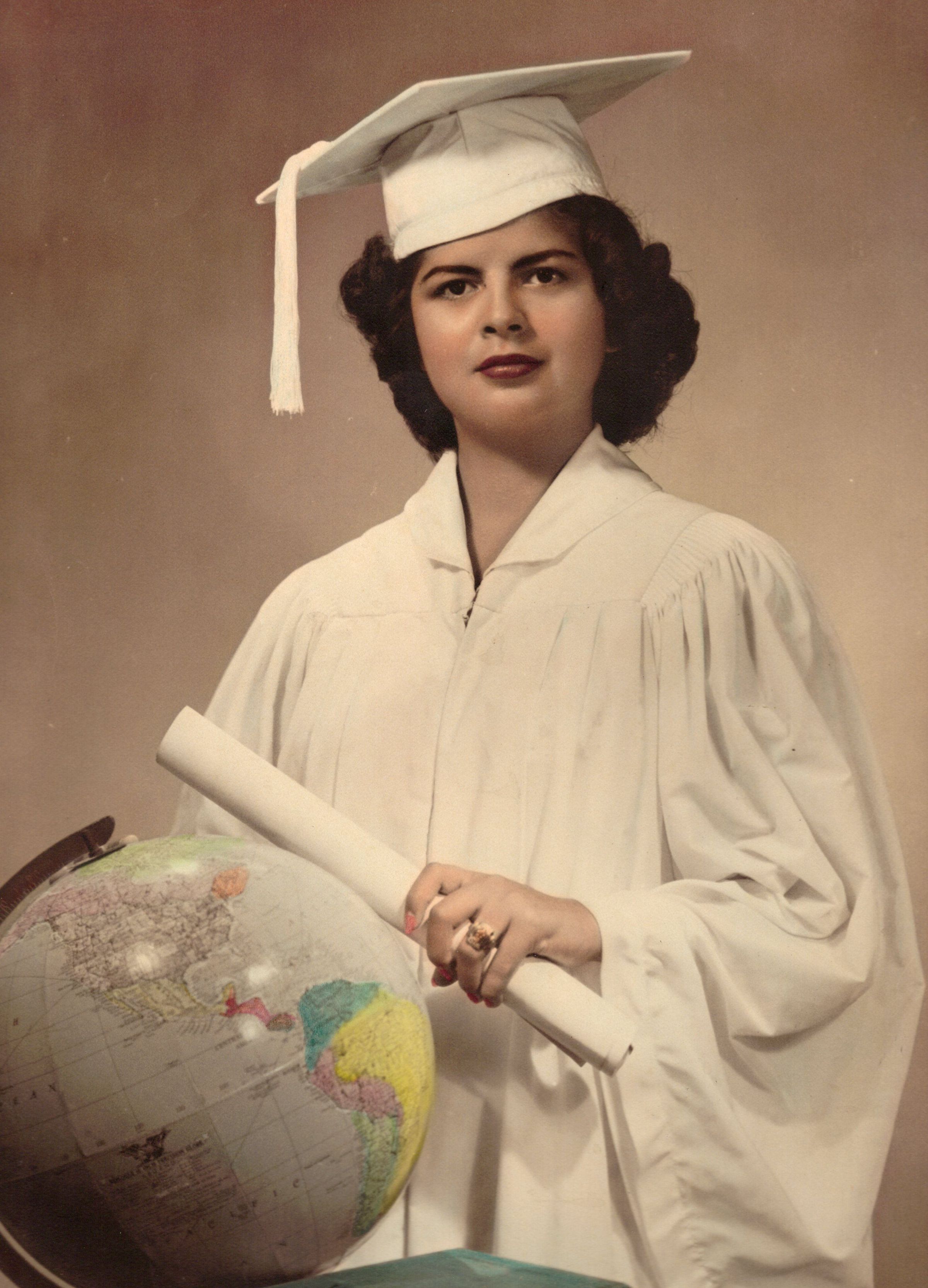 Photograph of Grace Napolitano in cap and gown for high school graduation.Photograph Details