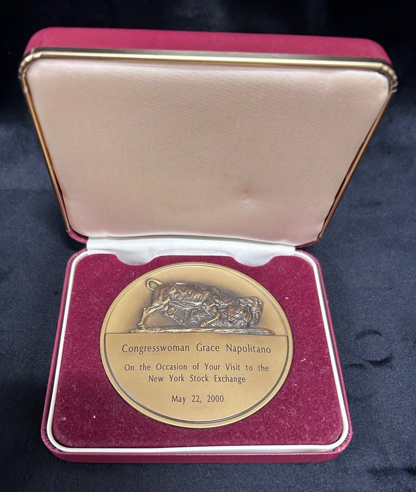 Box with New York Stock Exchange medal reading "Congresswoman Grace Napolitano On the Occasion of Your Visit to the New York Stock Exchange, May 22, 2000."Collection