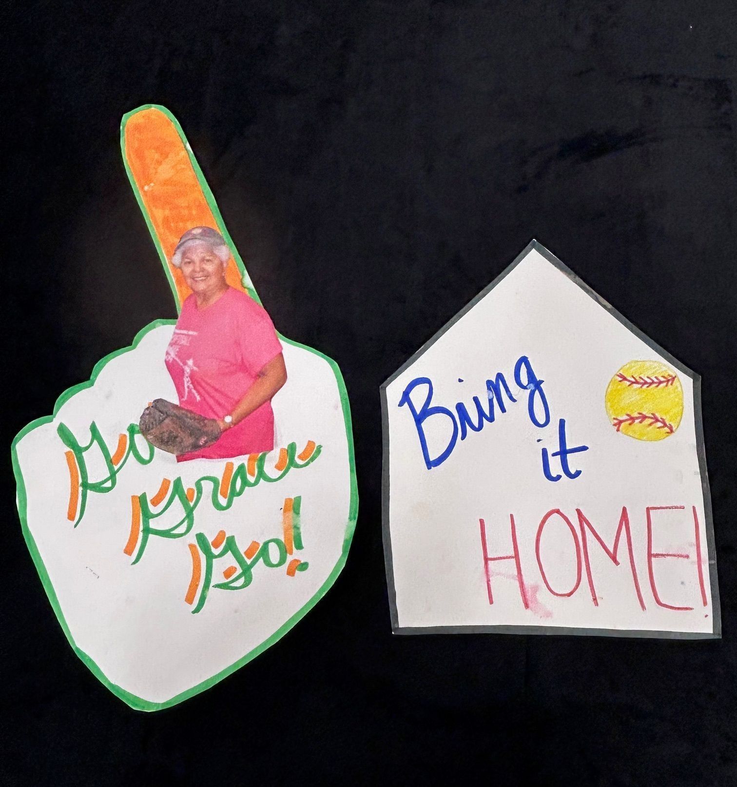 "Go Grace Go!" sign with a picture of Grace Napolitano and "Bring it Home!" sign.Collection