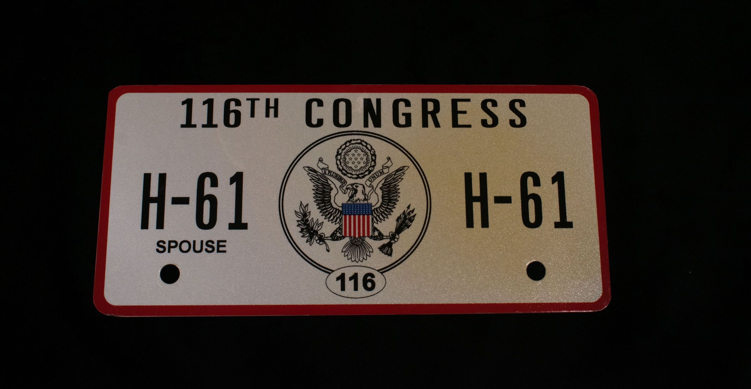 Metal spouse license plate from the 116th Congress.Collection