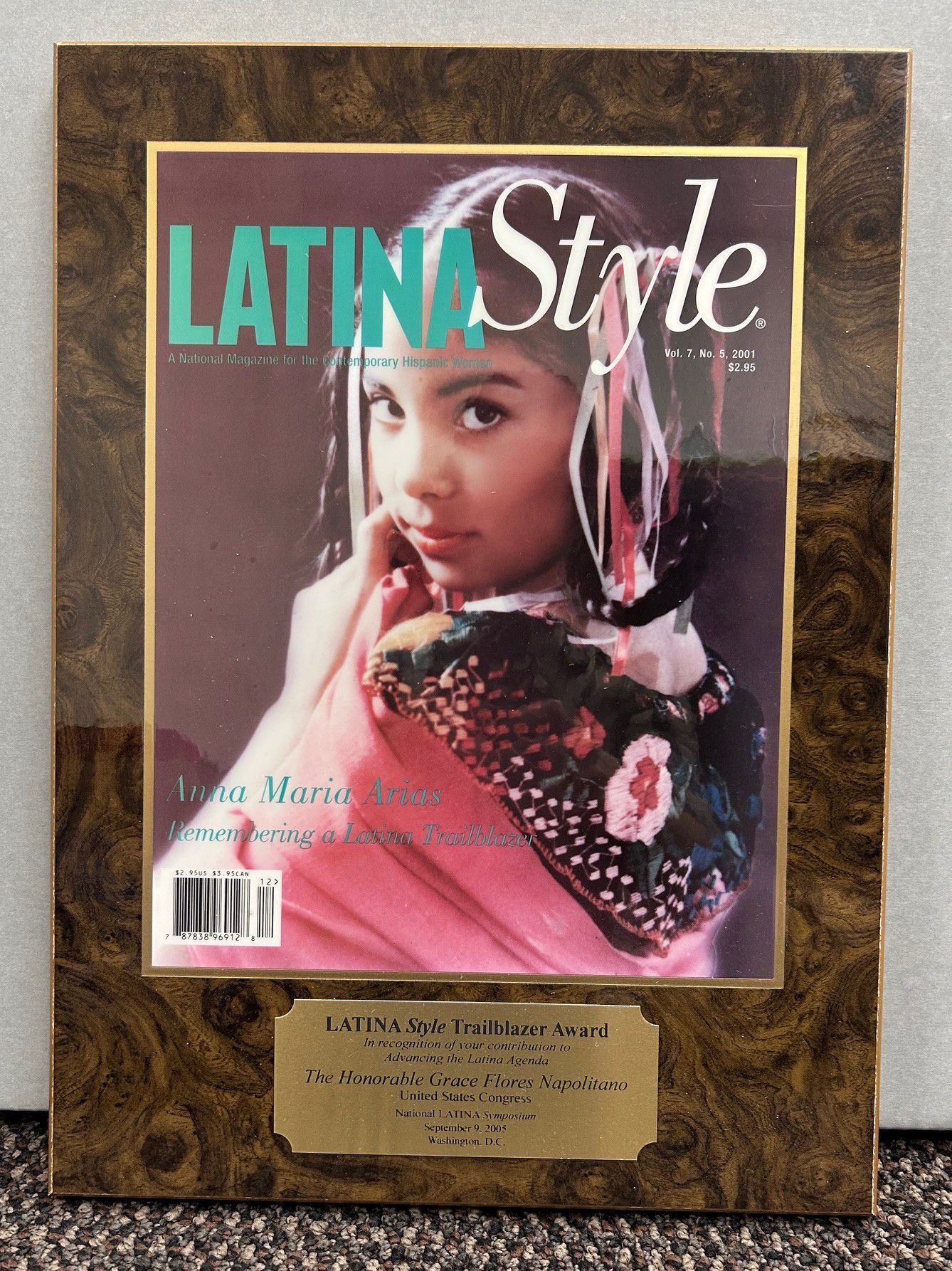 Wood backed LATINA Style Trailblazer Award for Advancing the Latina Agenda, National Latina Symposium, September 9, 2005.Collection
