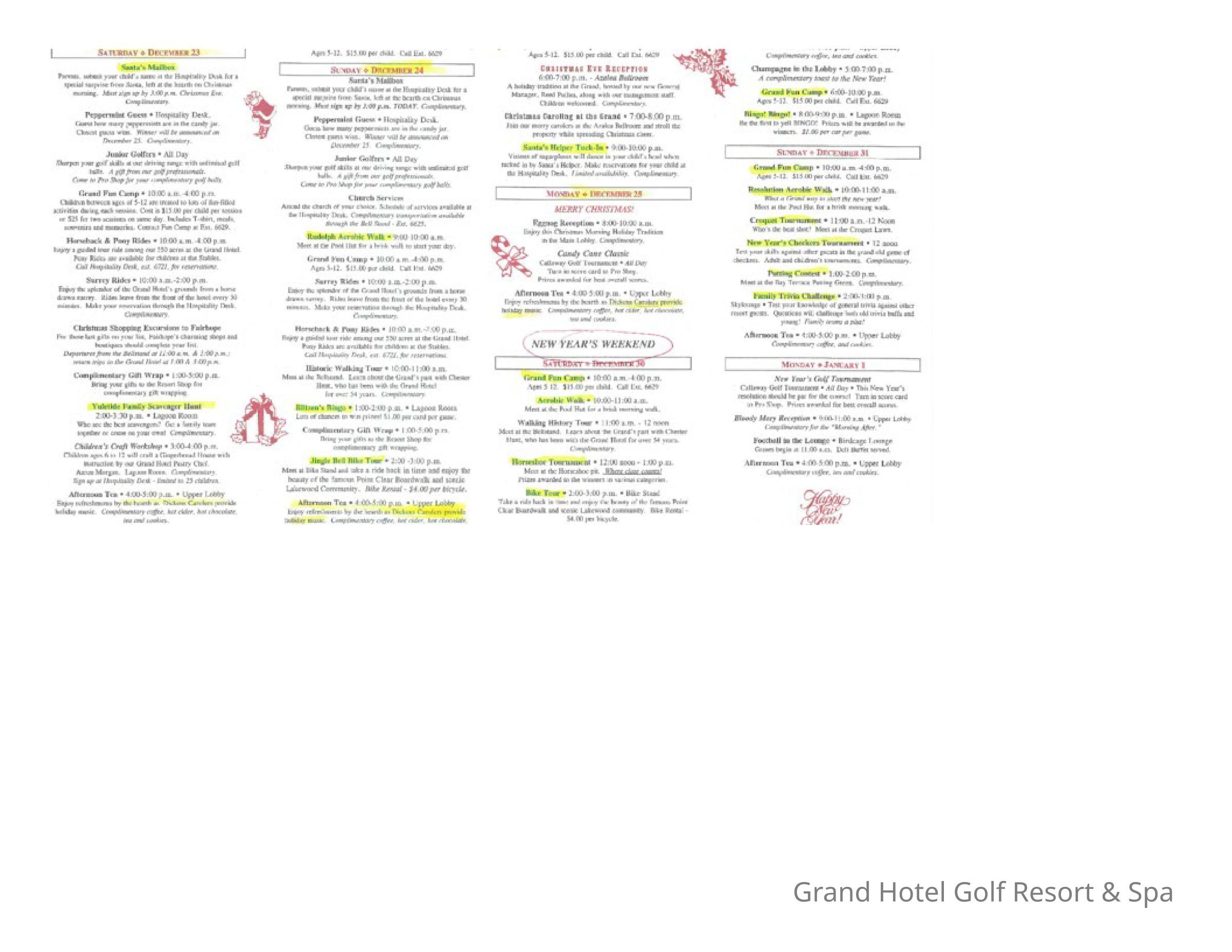 1995 Christmas Grand Hotel Activities page 2