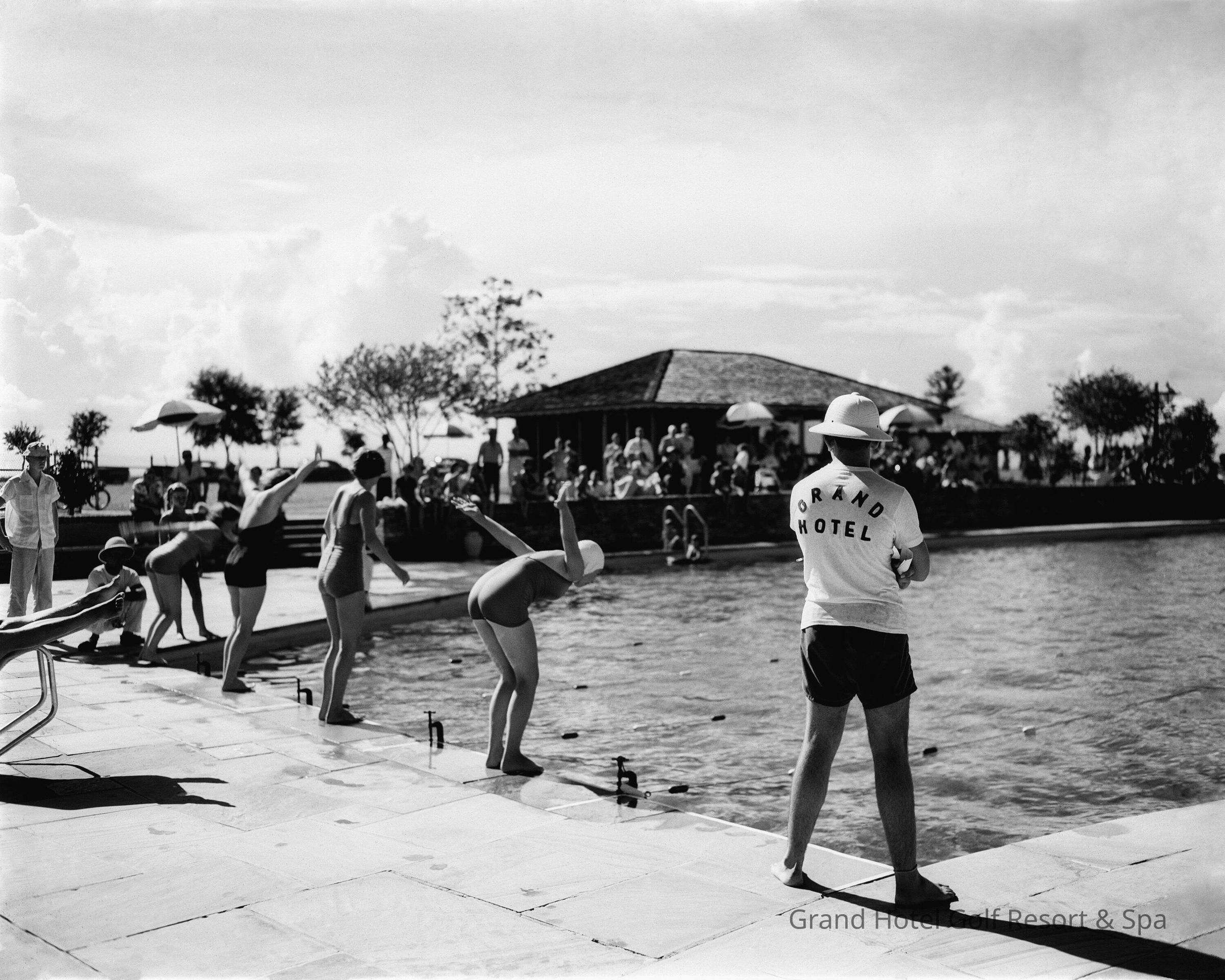 Swim meet at Grand Hotel pool in 1950's. This large pool opened in 1947, once deemed one of the largest pools in the South.Create Date