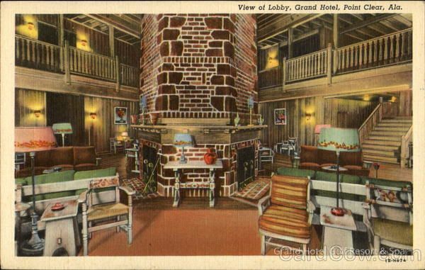 The ambiance of the lobby in the early 1940's rendered a more rustic feel than offered modern times. The hexagon shaped central fireplace has three functioning fireplaces, one on every other side, constructed with local brick and stone. This central core of the Main Building still serves as the "hub" of activity at The Grand.Create Date