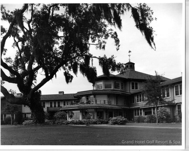 Bayside view of Grand Hotel - lounge, card room and skylounge comprises central core