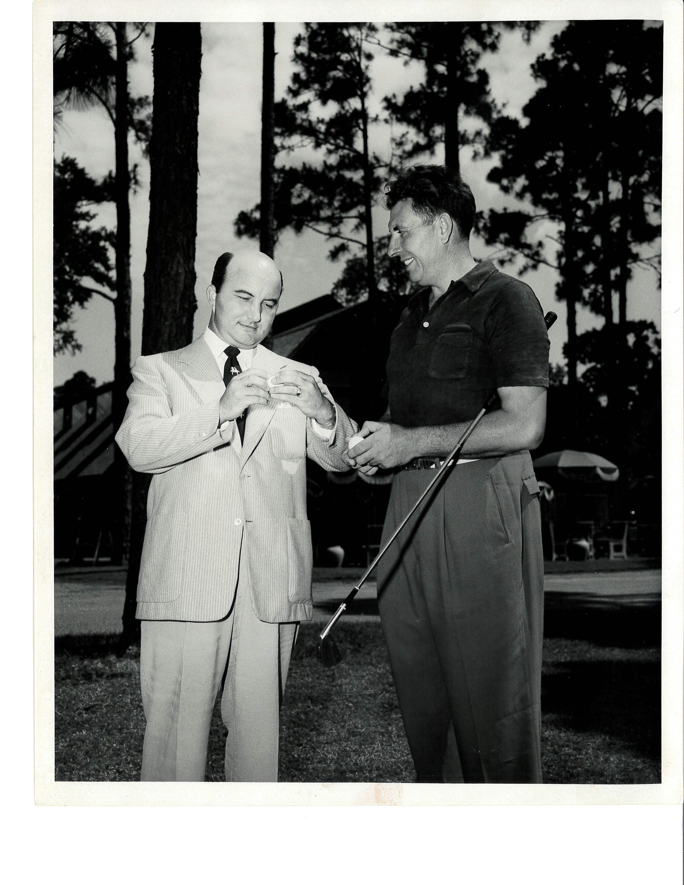 Lakewood Golf Course opened in 1947, established as a private club. Hotel guests could also play. Doug Roberts (L) served a Club Manager from 1948 till he retired in 1985. Andy Mortimer (R) was the first Golf Professional. The clubhouse is in the background, which opened in 1948.Create Date