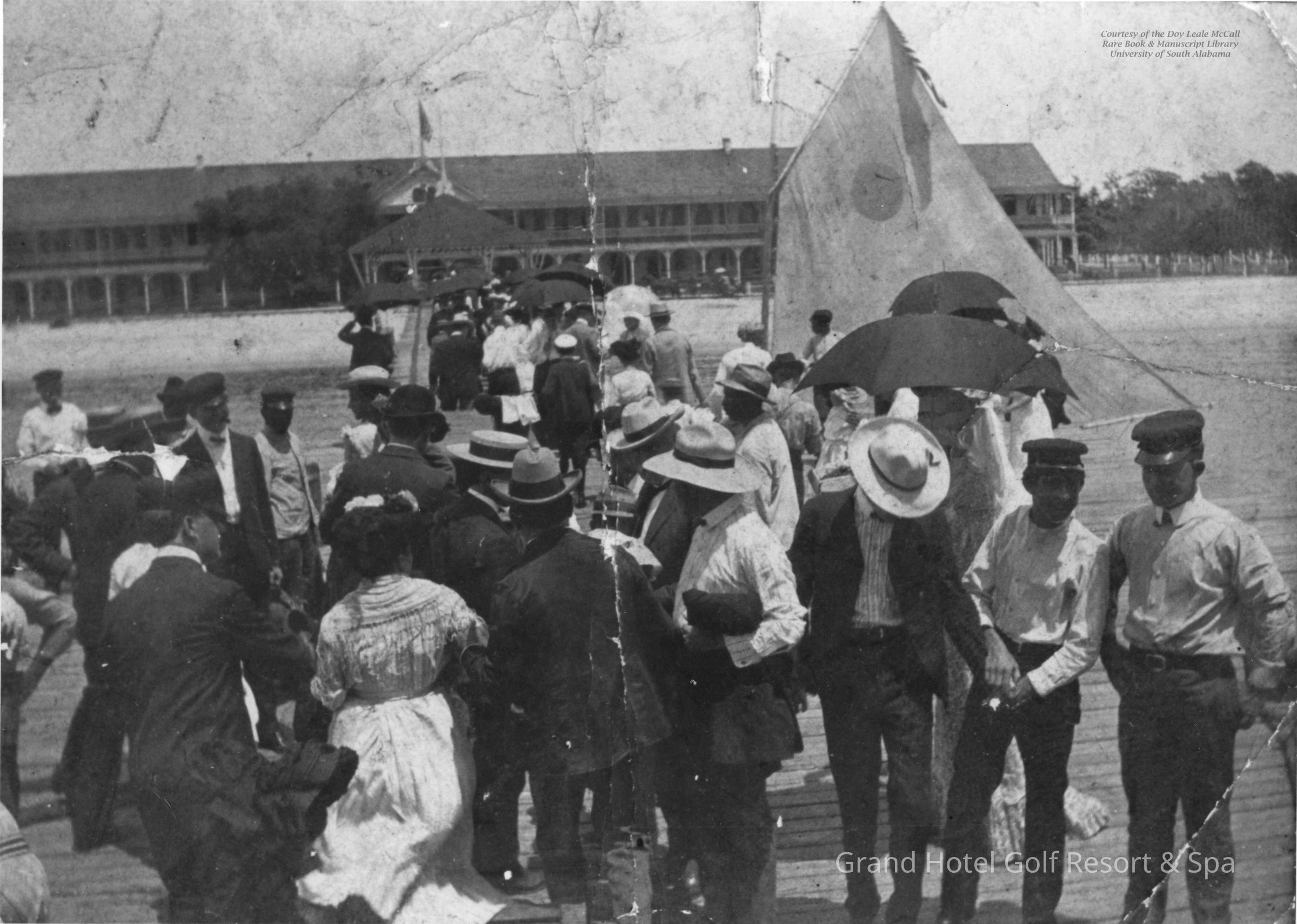arrival at Point Clear - guests on wharf, circa early 1900's
