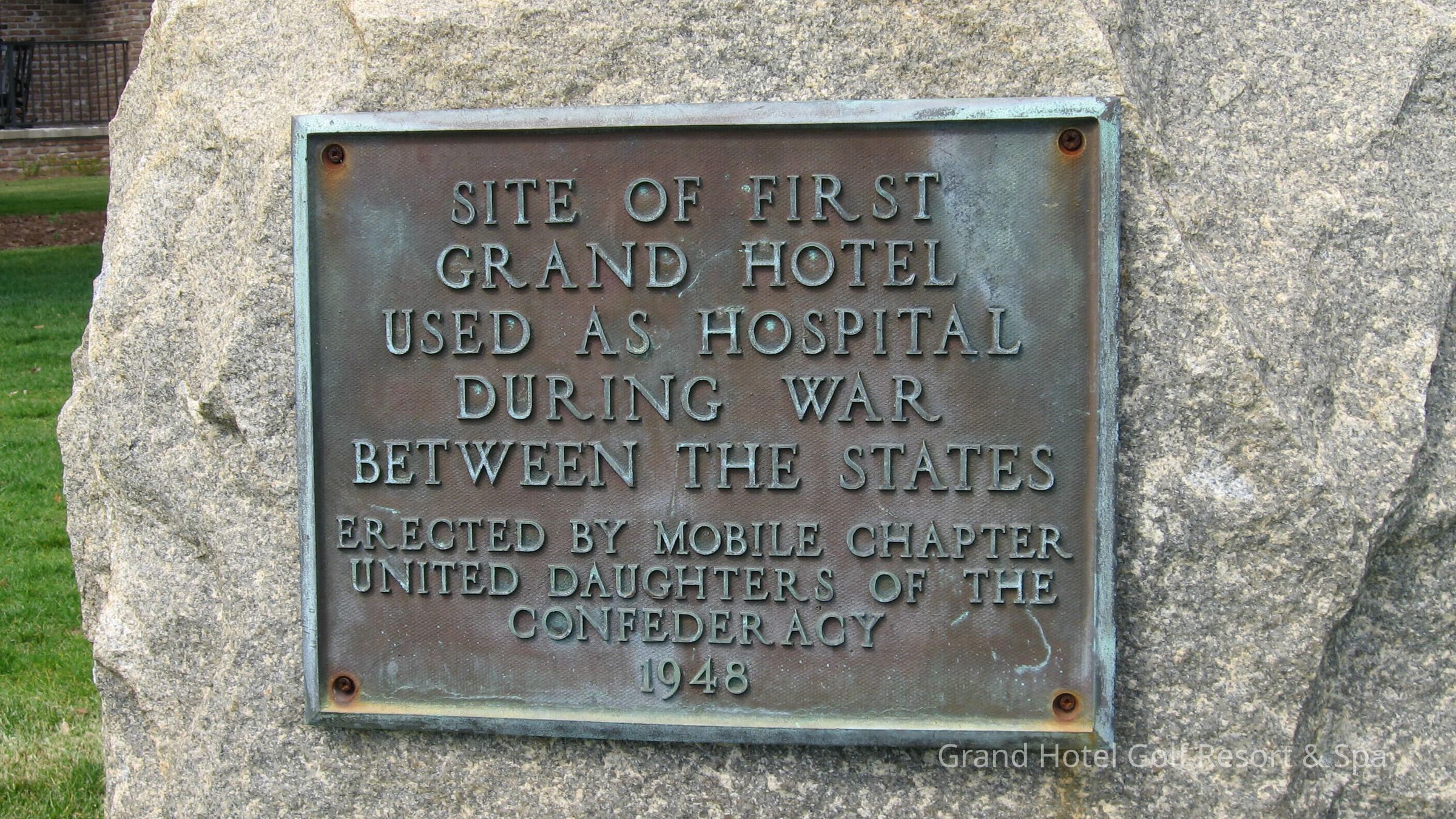Historic Marker detail - Site of First Grand Hotel, which was used during the War Between the StatesDescription