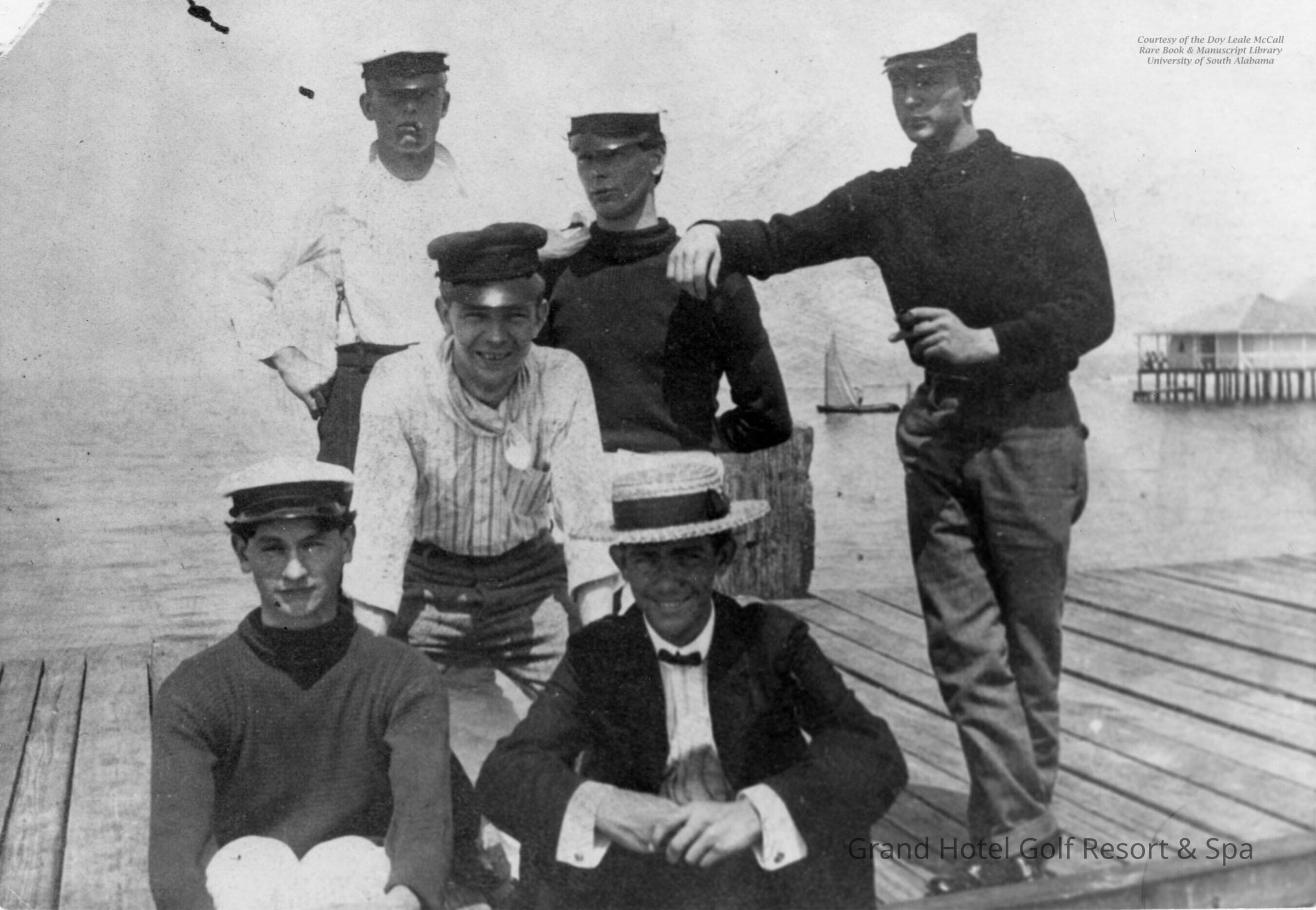 Bay boats were the main mode of transportation from Mobile to the hotels which dotted the eastern shore of Mobile Bay. In this turn-of-the-century photo, one rather dapper gentleman joins this group of men who most likely served as part of a boat crew. Photo is most likely taken at Point Clear.Create Date