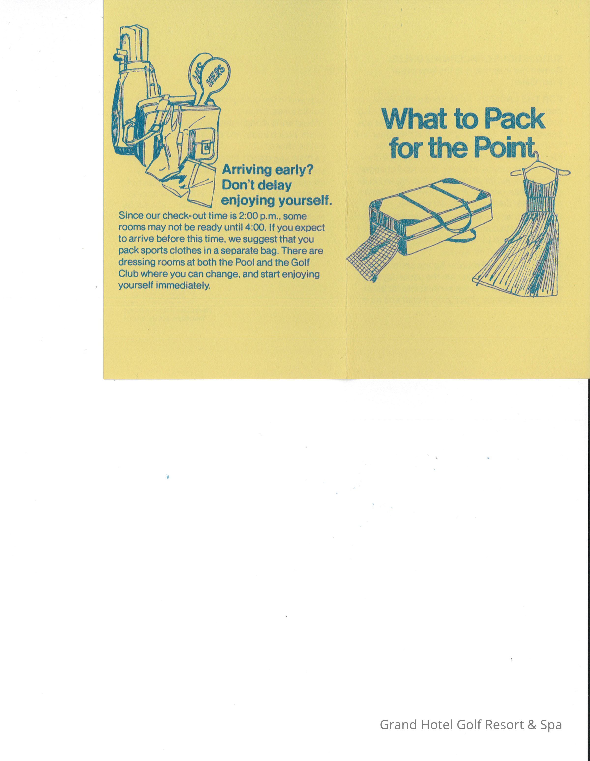 "WHAT TO PACK for the Point" pamphlet 1978Description