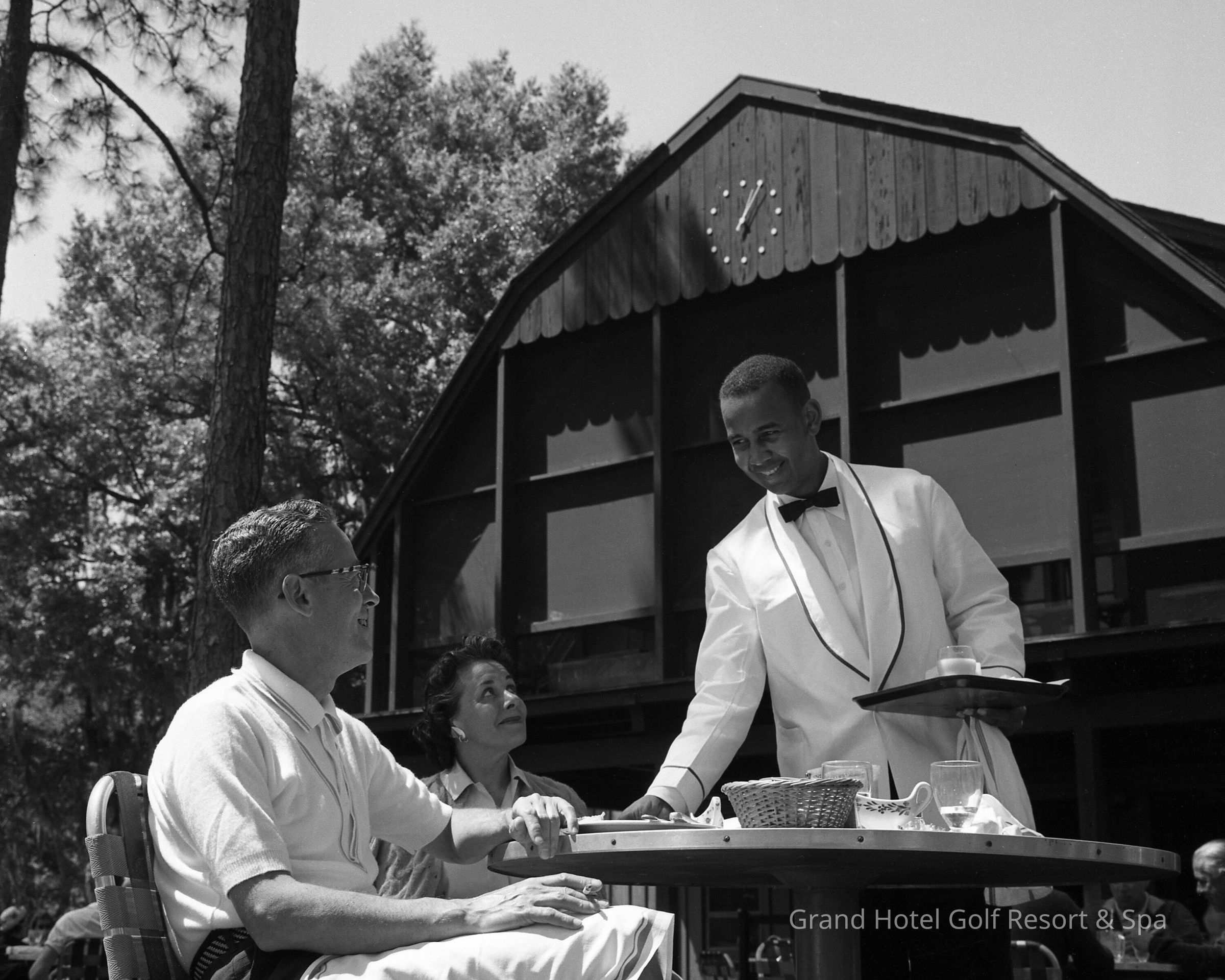 Lakewood Golf Club - lunch served by Chester Hunt on front lawn patio - circa late 1940'sDescription