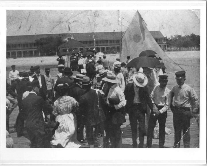 The busy wharf upon arrival at Point Clear Hotel / Grand Hotel; mode of transportation would have been by Bay Boat.