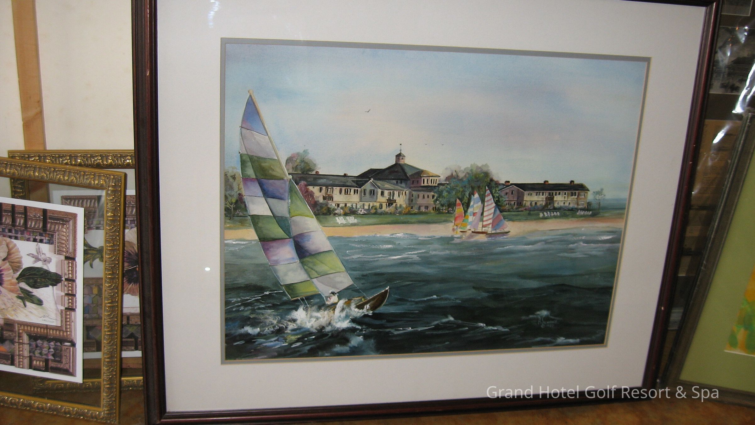 Painting of Grand Hotel with sailboats - artist B. SumrallDescription